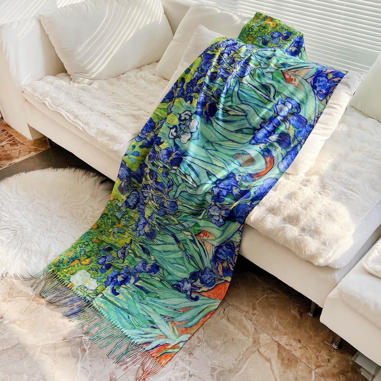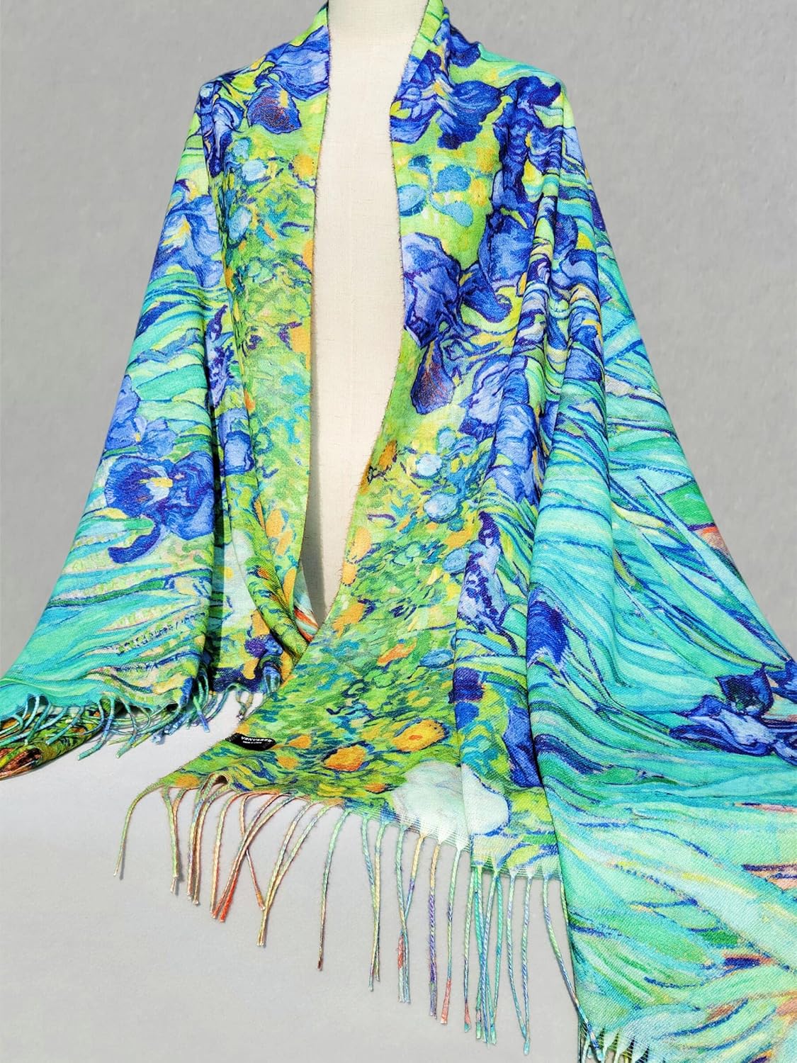 Women’s Cashmere Feel Scarf Soft Large Shawl Wrap Blanket Double Sided Art Print Warm Pashmina Stoles Klimt Van Gogh Gifts