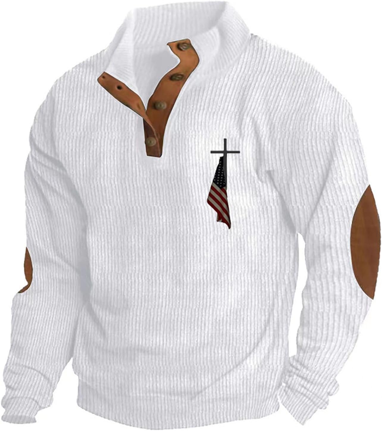 Men’s USA Flag Graphic Sweatshirts American Patriotic Button Stand Collar Long Sleeve Pullover, S-3XL