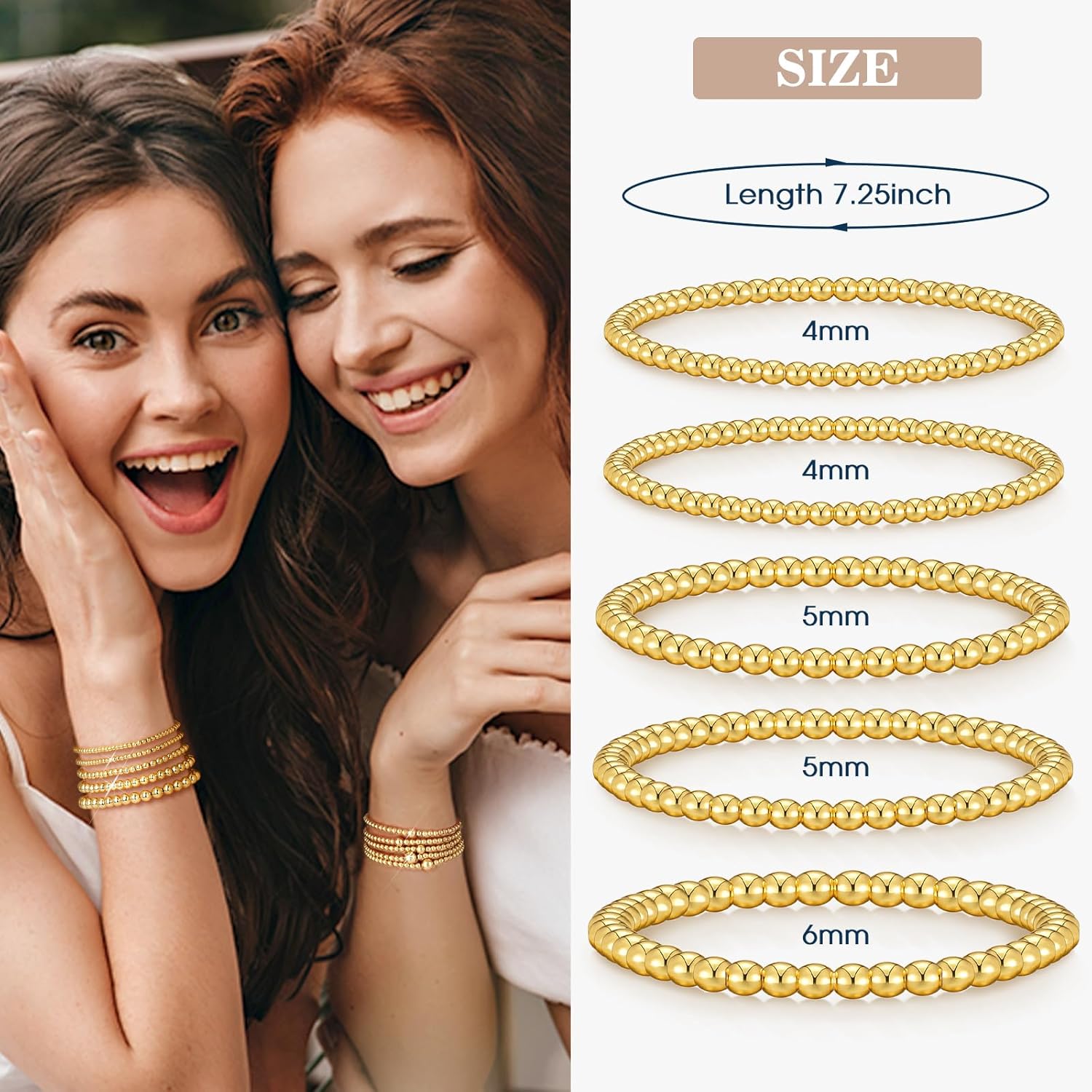 doubgood Gold Bracelets for Women Gold Beaded Bracelets for Women Gold Bracelet Stack 14K Gold Plated Stackable Stretch Bead Ball Bracelet Sets