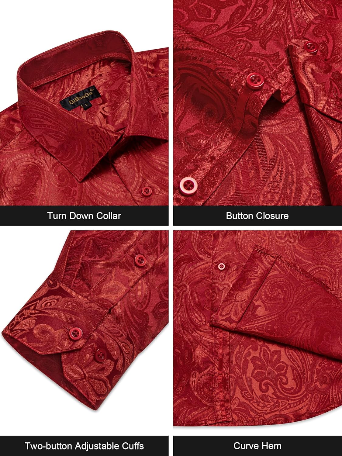DiBanGu Silk Paisley Dress Shirts for Men Long Sleeve Button Down Shirt Casual Regular Fit Mens Shirts Wedding Party