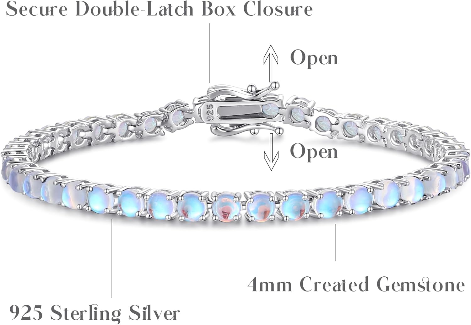 FANCIME Birthstone Bracelet Sterling Silver Gemstone Tennis Bracelets Fine Jewelry Wedding Bridal Prom Birthday Gift for Women Her, Length 7.9 Inch Width 4mm