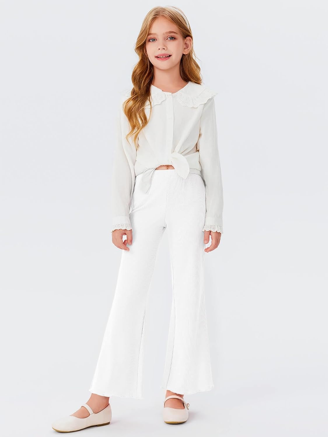Haloumoning Girls Pants Kids Ribbed Flare Pants High Waist Bell Bottoms 4-12 Years
