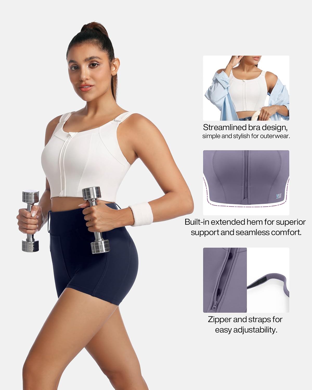 High Impact Sports Bra Zipper Front Adjustable Large Bust No Bounce Wireless Workout for Women Fitness Running