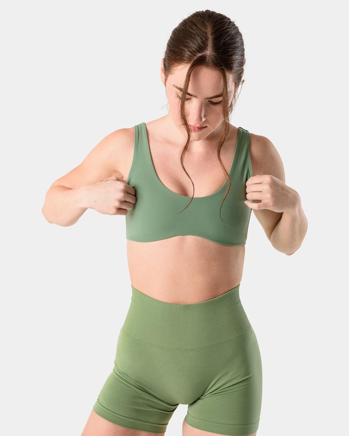 Kamo Fitness Cleo Scoop Neck Wireless – Double Lined Minimal Yoga Bralette | Low Impact Sports Bra