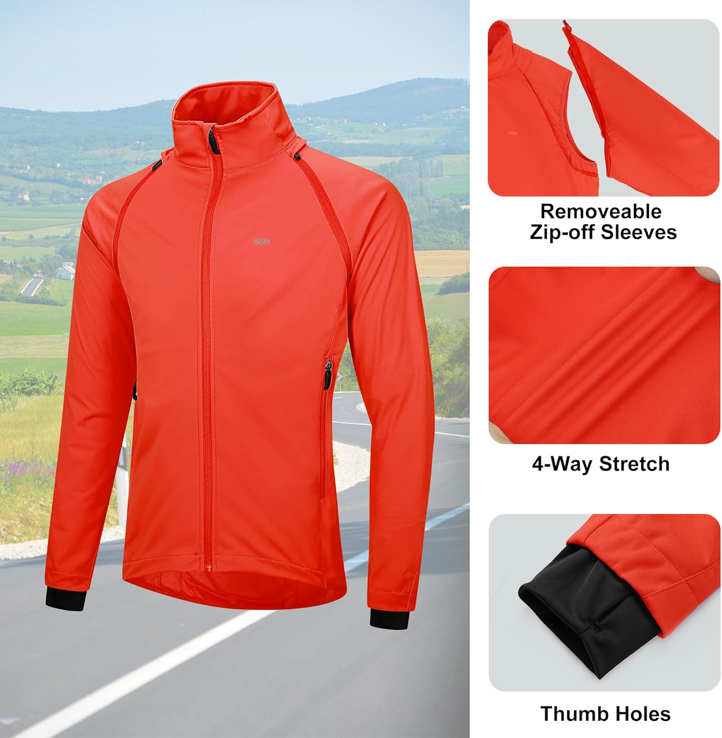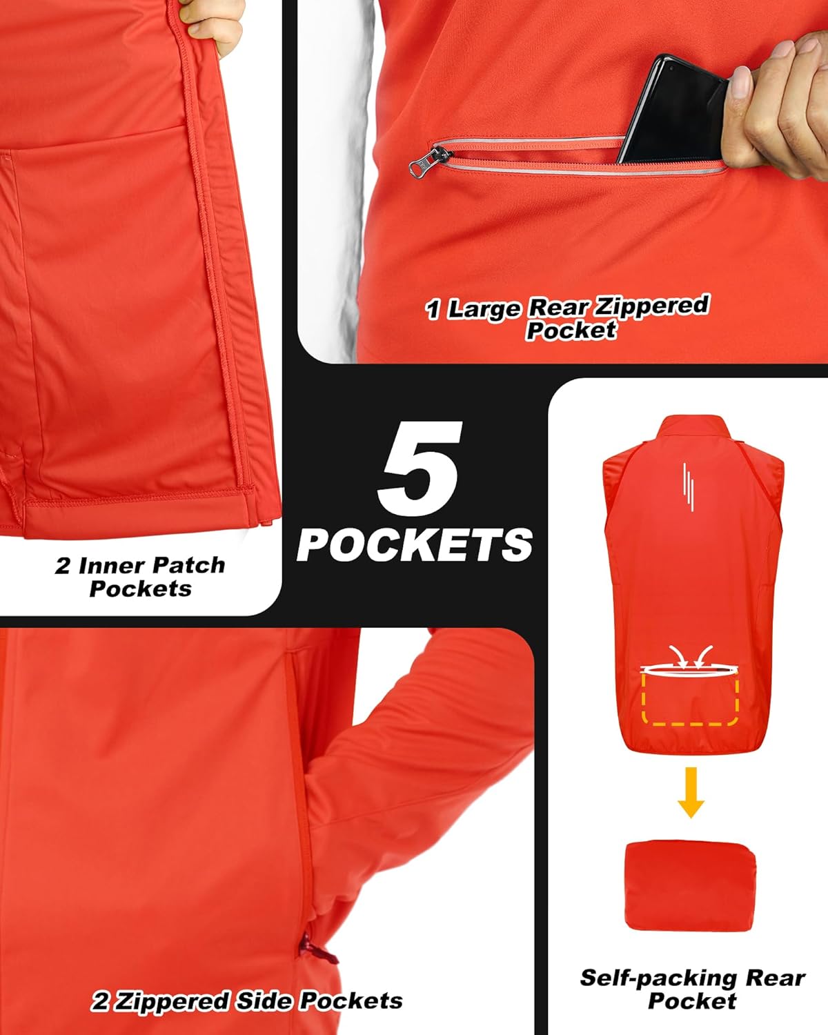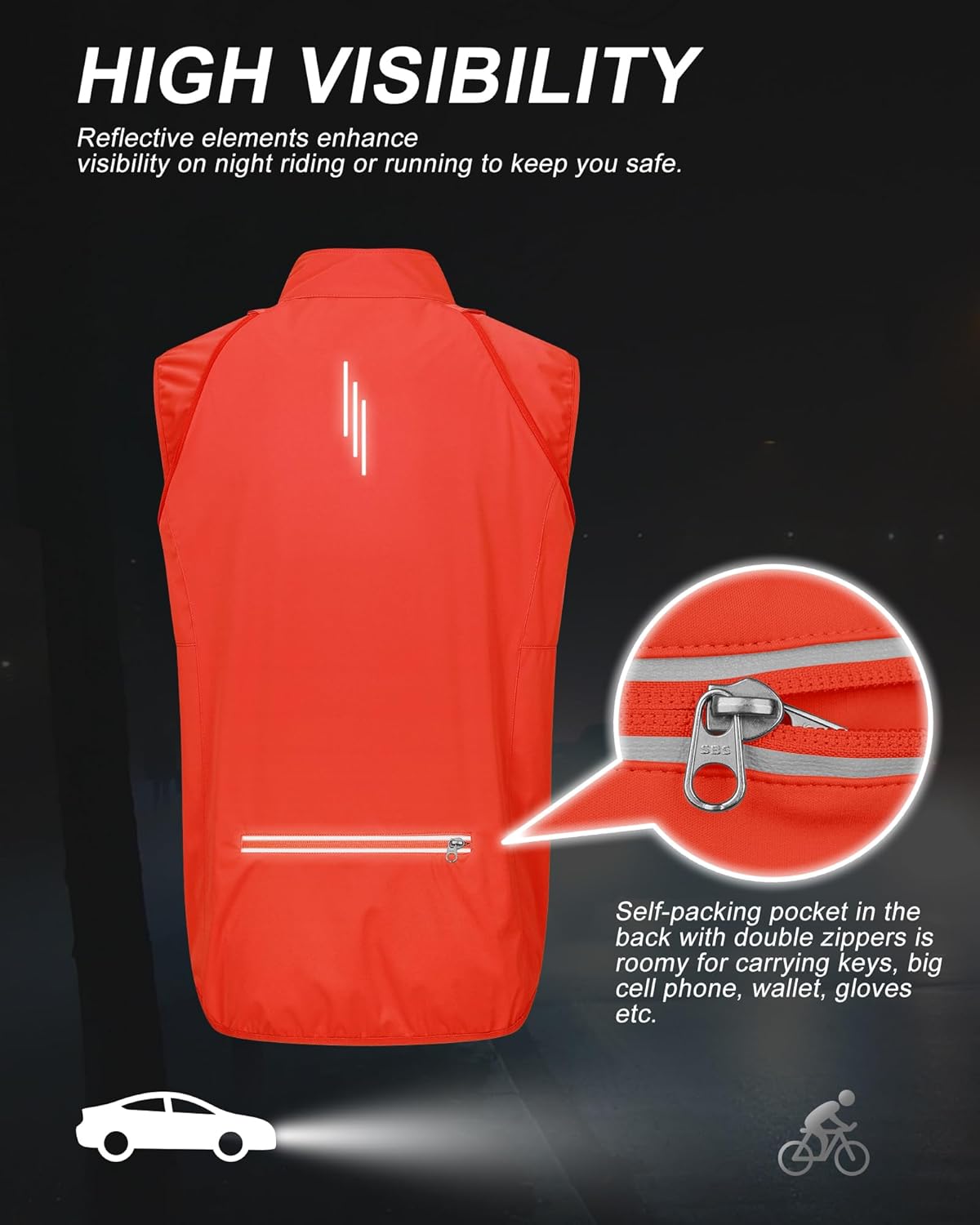 33,000ft Men’s Cycling Jacket Long Sleeve, Waterproof Running Bike Vest Outerwear Reflective Windproof Sleeveless Jacket