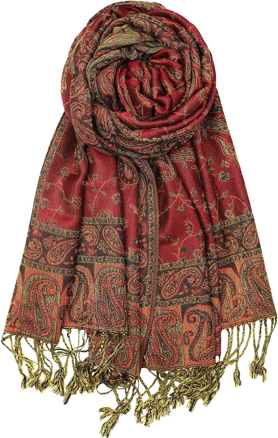 Achillea Soft Silky Reversible Paisley Pashmina Shawl Wrap Scarf w/Fringes