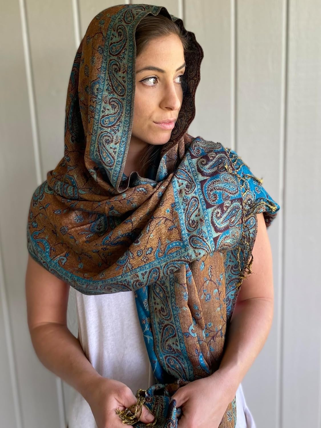 Achillea Soft Silky Reversible Paisley Pashmina Shawl and Wrap
