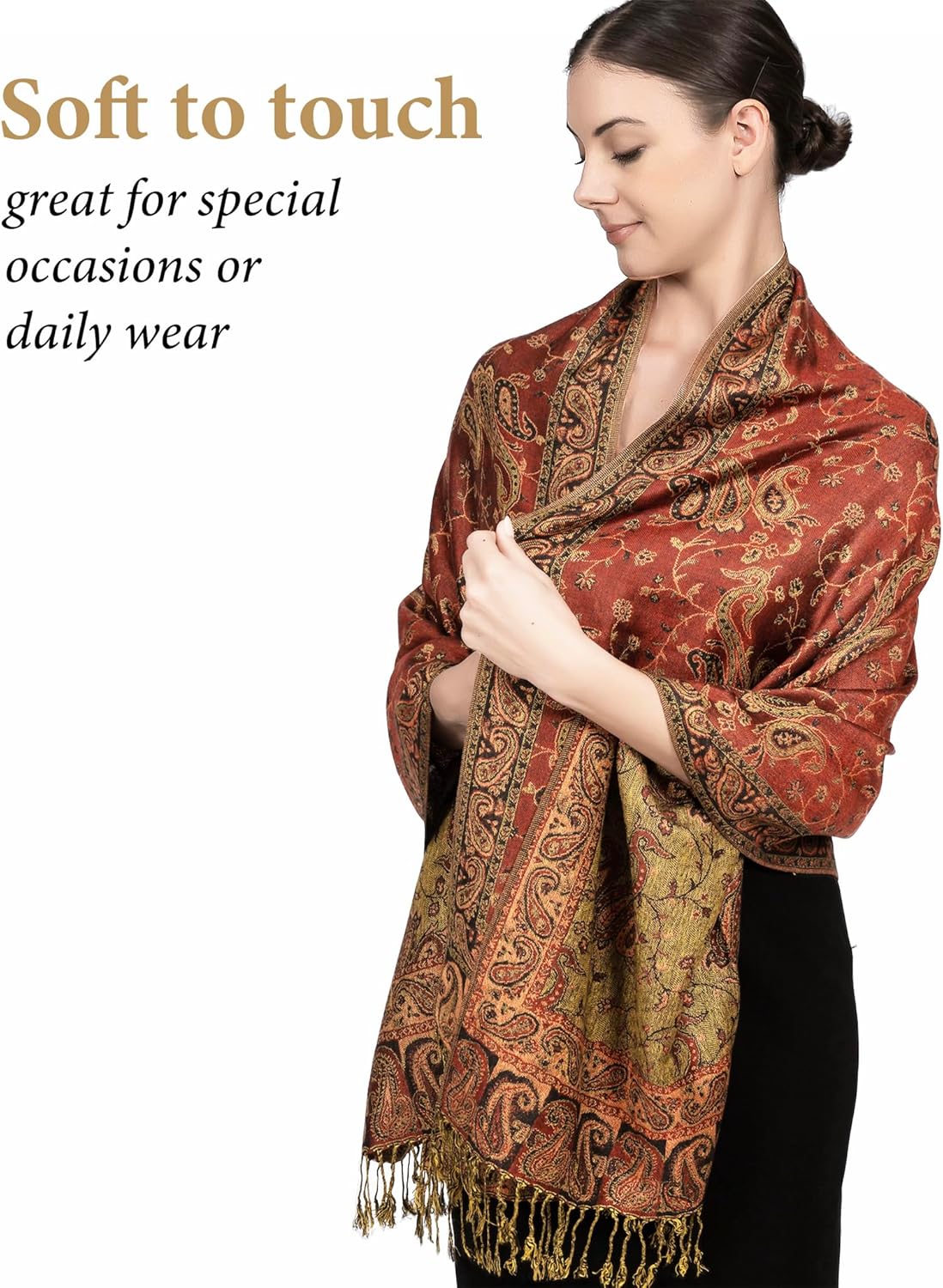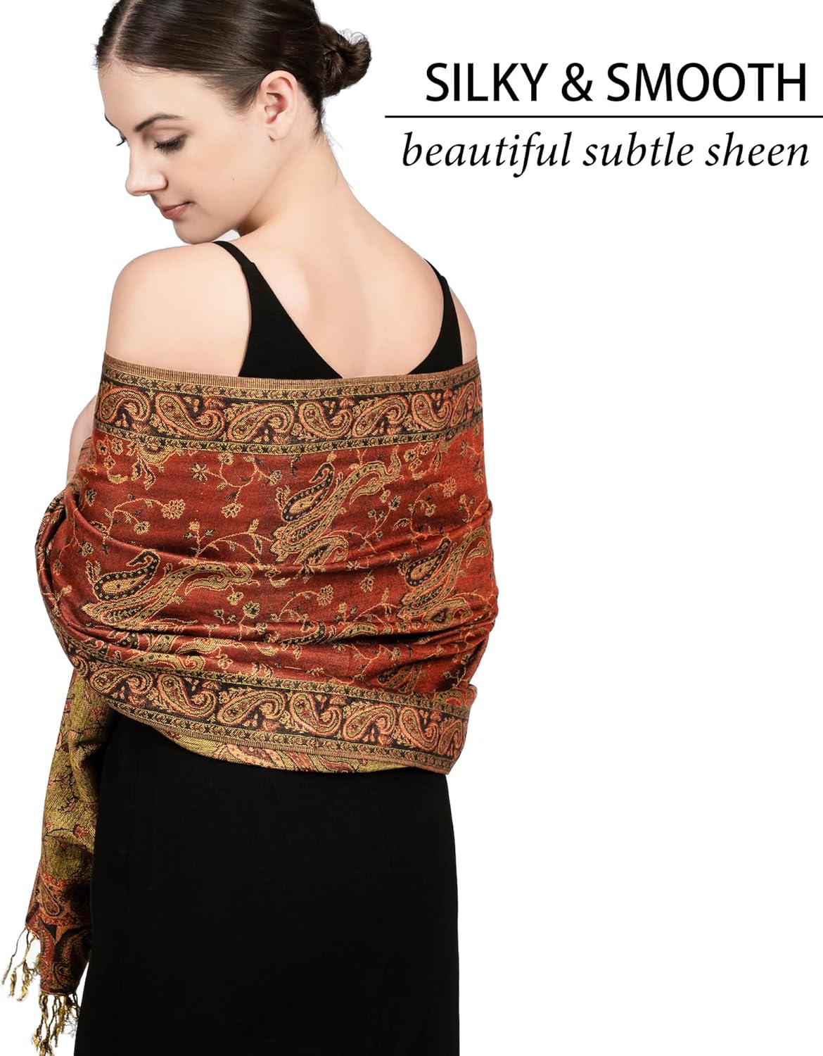 Achillea Soft Silky Reversible Paisley Pashmina Shawl and Wrap