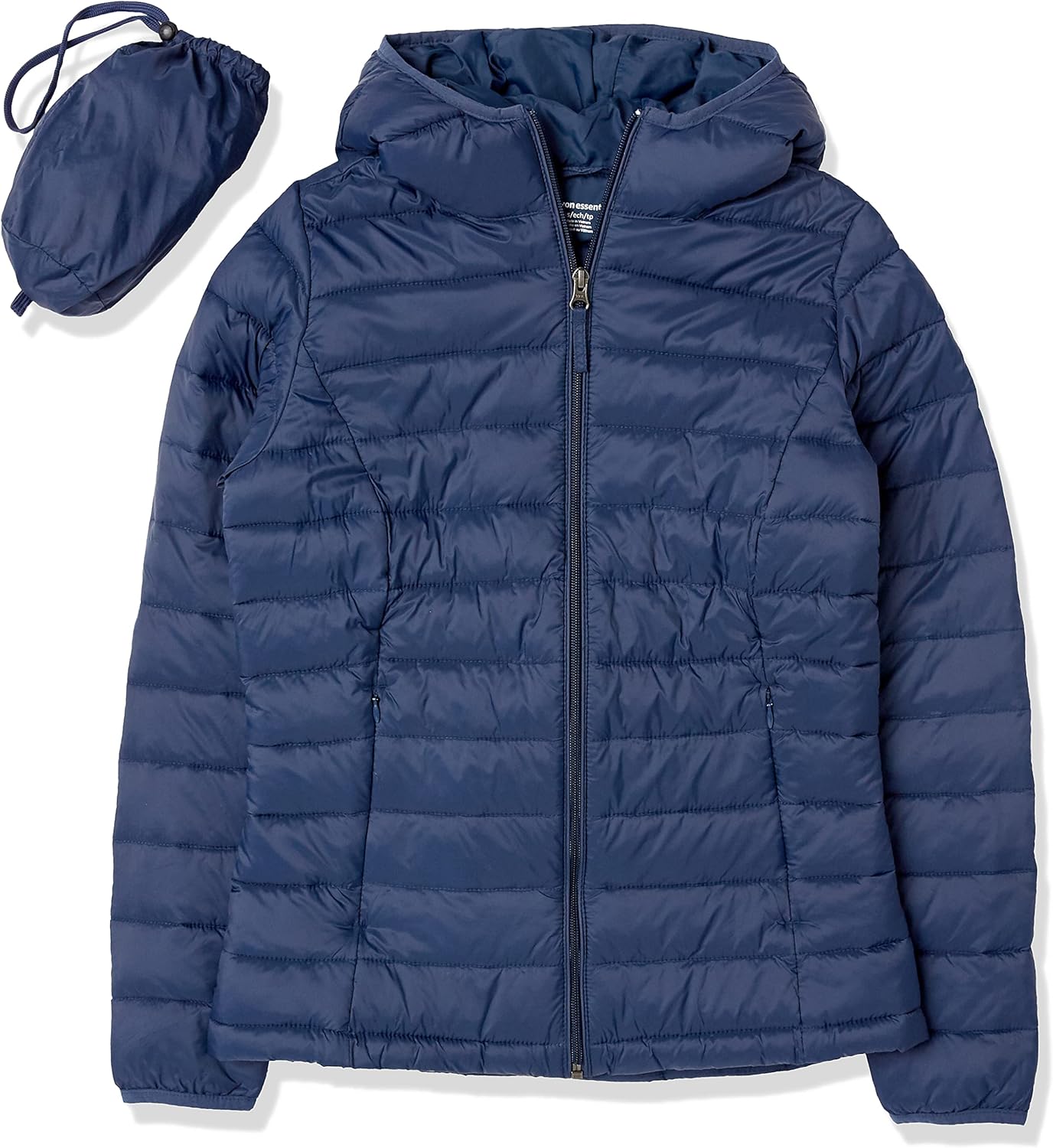 Amazon Essentials Women’s Lightweight Long-Sleeve Full-Zip Water-Resistant Packable Hooded Puffer Jacket