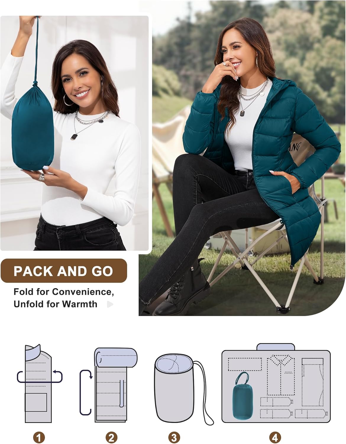 ANOTHER CHOICE Women Packable Puffer Jacket Lightweight Hooded Puffy Jacket