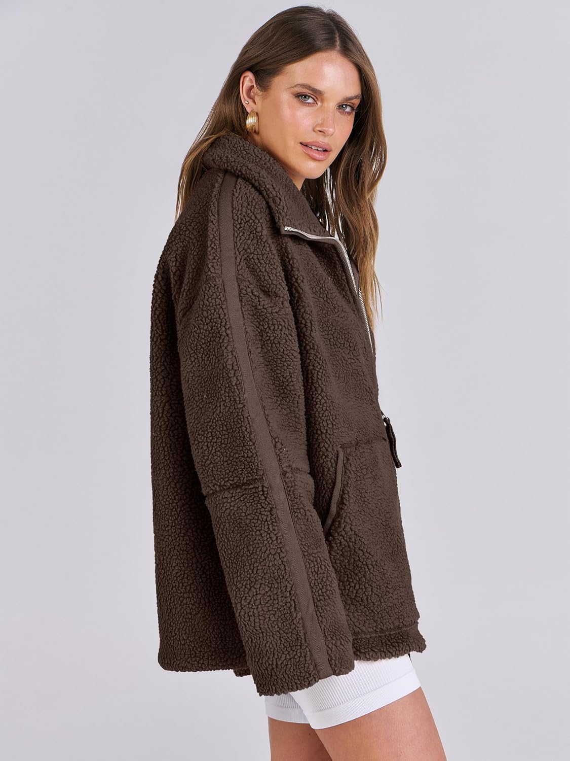 ANRABESS Womens Fleece Jacket Oversized Zip Up Sherpa Fuzzy Casual Coats Winter Fall Outerwear 2024 Clothes with Pockets