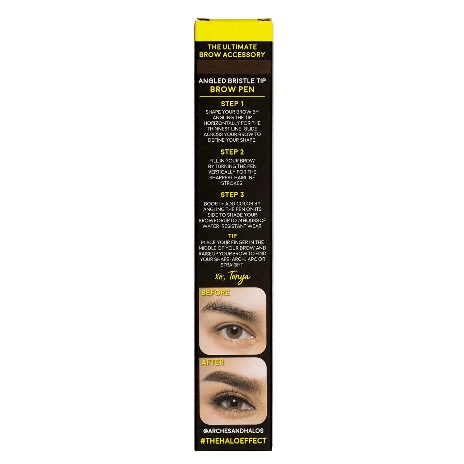 Get a lifted and defined brow look with the Angled Bristle Tip Pen! This versatile angled tip allows you to create ultra-thin hairlike strokes and easily shades your brow for up to 24 hours of smudge-proof, water-resistant wear. Shape your brow by angling the tip horizontally for the thinnest line. Glide across your brow to define your shape. Fill your brow by turning the pen vertically for the sharpest hairline strokes. Boost and add color to your brow by angling the pen on its side to shade your brow.
