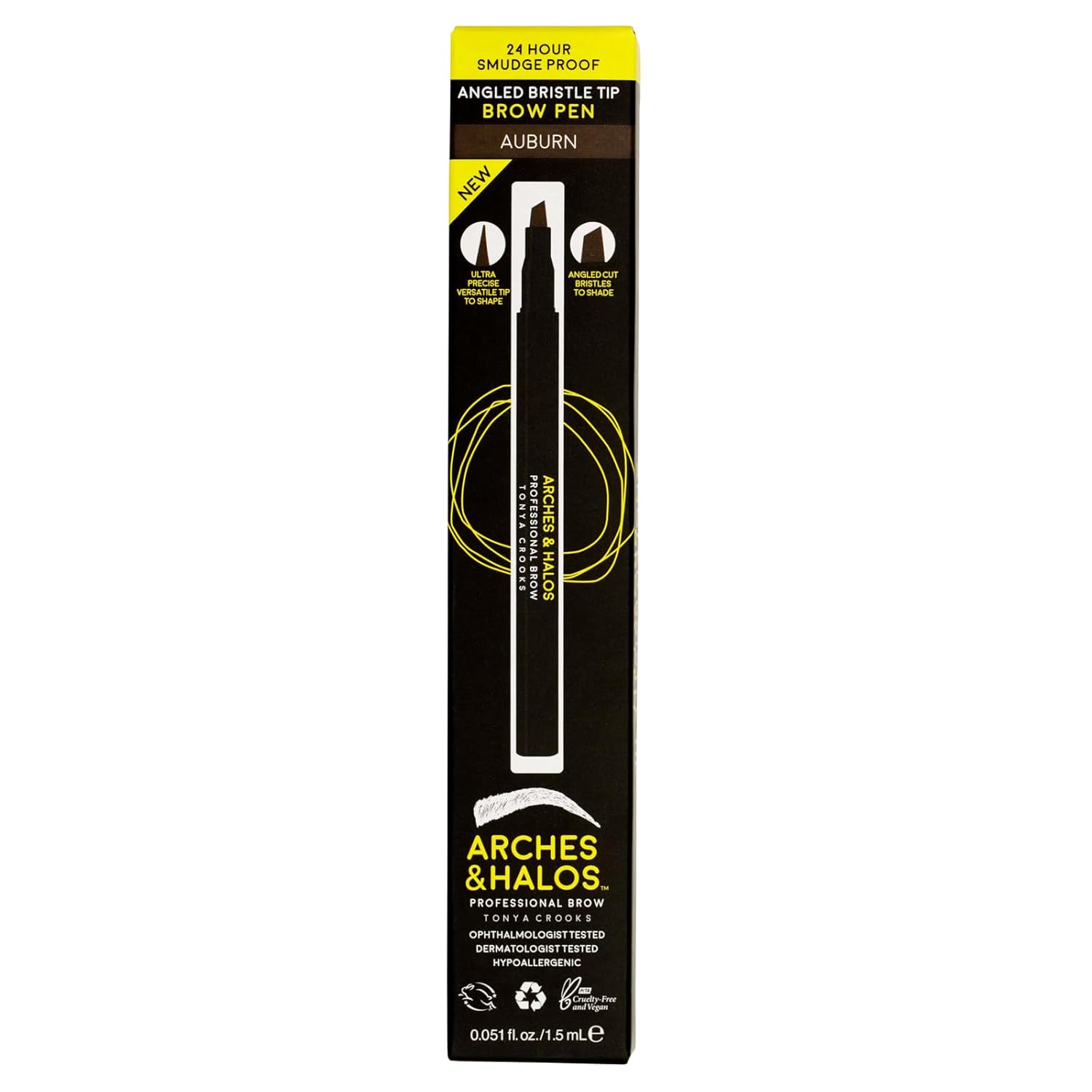 Arches & Halos Angled Bristle Tip Waterproof Brow Pen – Water Based And Smudge Proof – Fills In Sparse Eyebrows And Gives Fuller Effect – Covers Scars Or Overplucked Brows – Auburn – 0.051 Oz