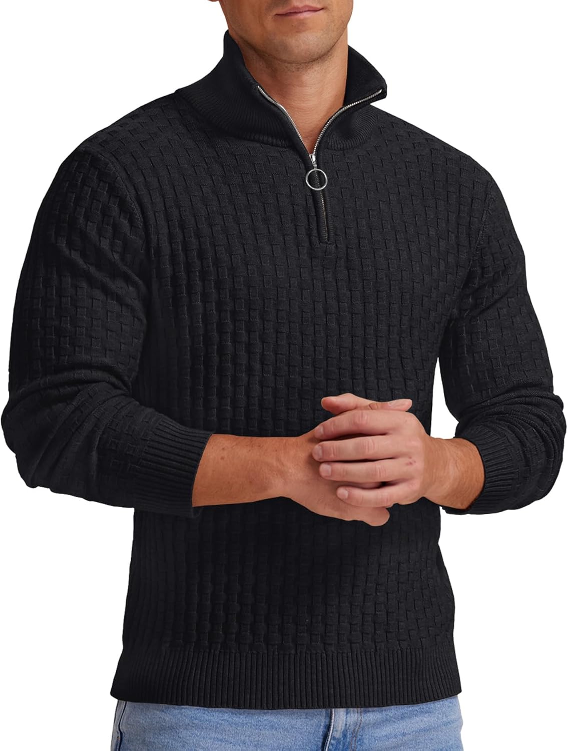 Askdeer Men’s Quarter Zip Sweater Waffle Knit Sweater Mock Neck Polo Sweater Casual Pullover Sweater with Ribbing Edge