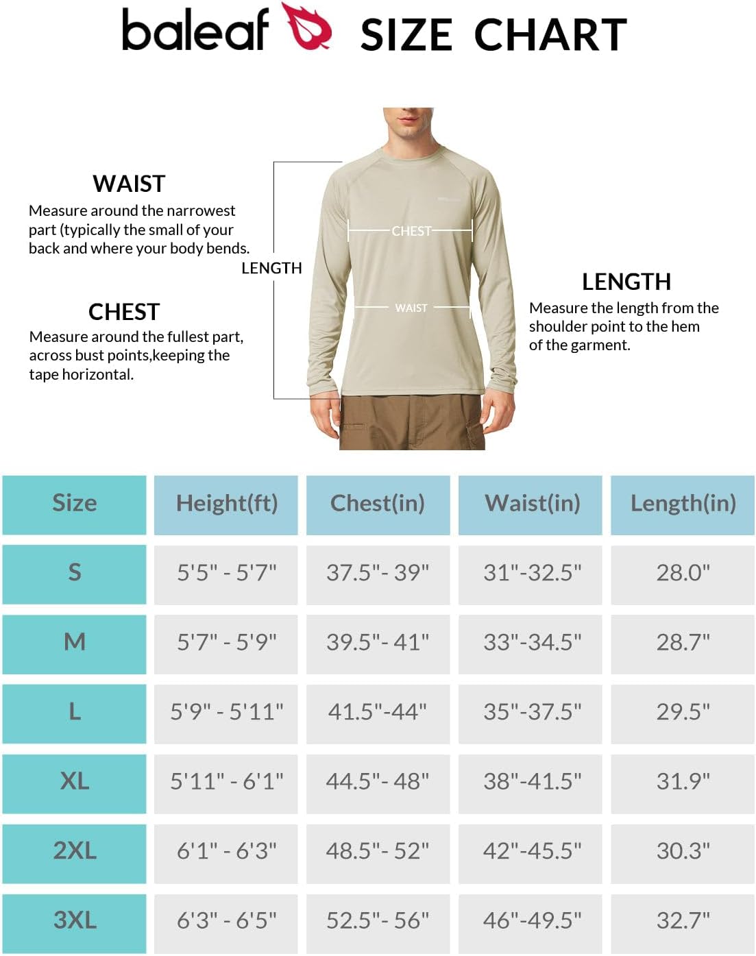 BALEAF Men’s Sun Protection Shirts UV SPF UPF 50+ Long Sleeve Rash Guard Fishing Running Quick Dry Lightweight