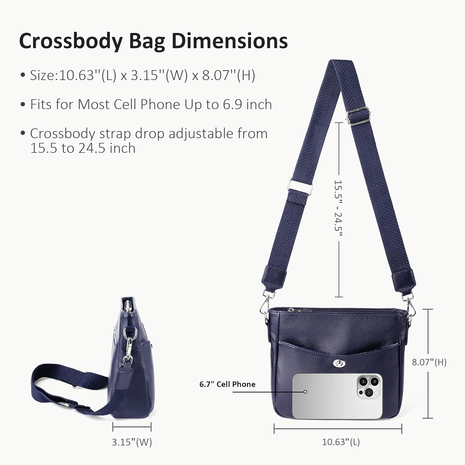befen Genuine Leather Crossbody Bags for Women, Women’s Shoulder Purse Hobo Handbags with Adjustable Wide Strap