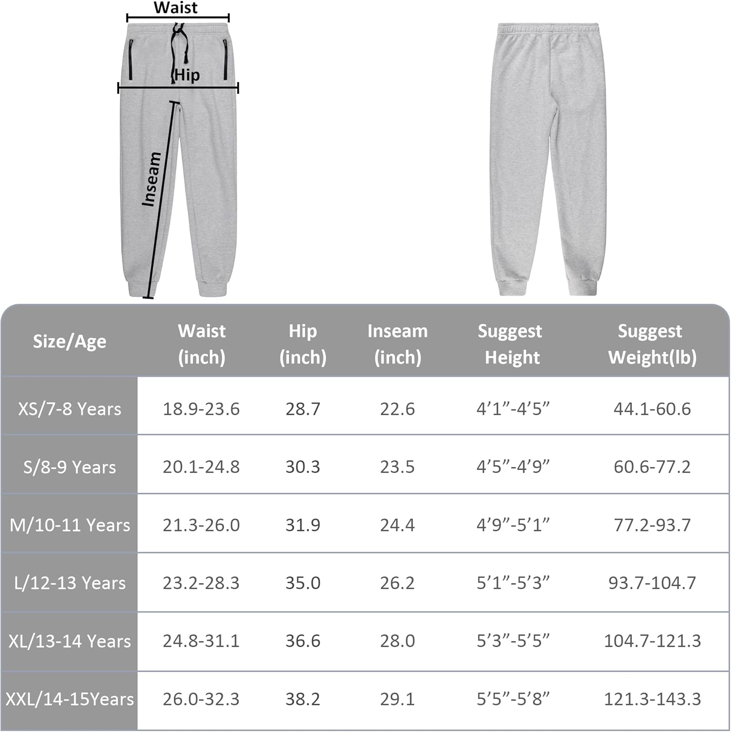 BIG ELEPHANT Boys Sweatpants with Zipper Pockets & Drawstring, Soft Kids Athletic Joggers Pants