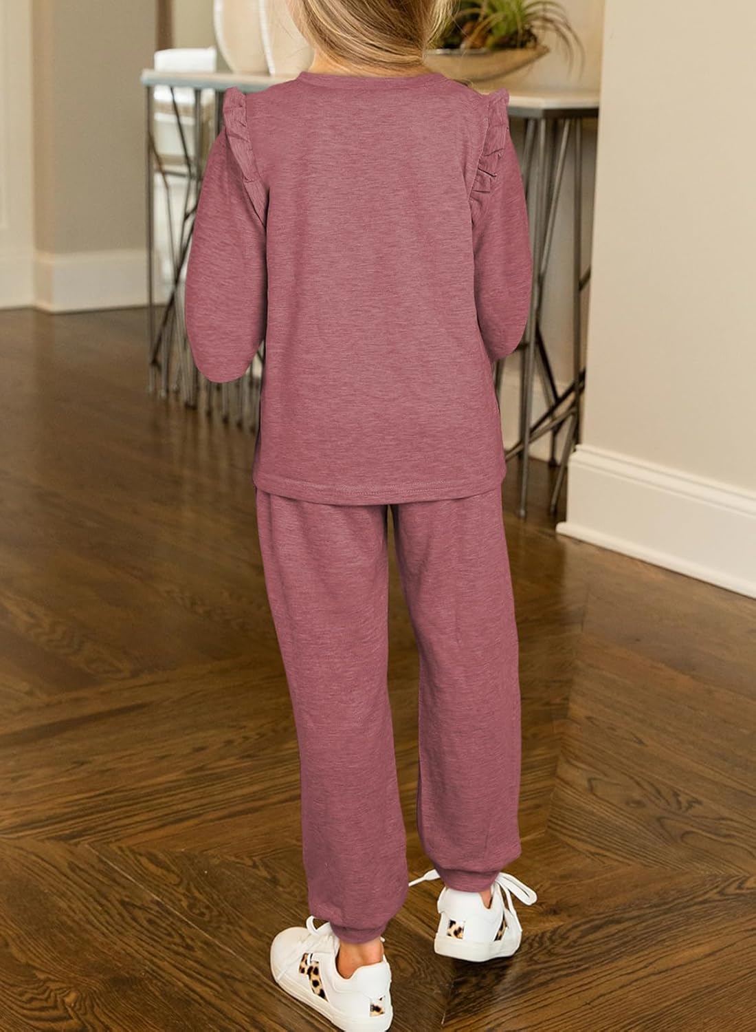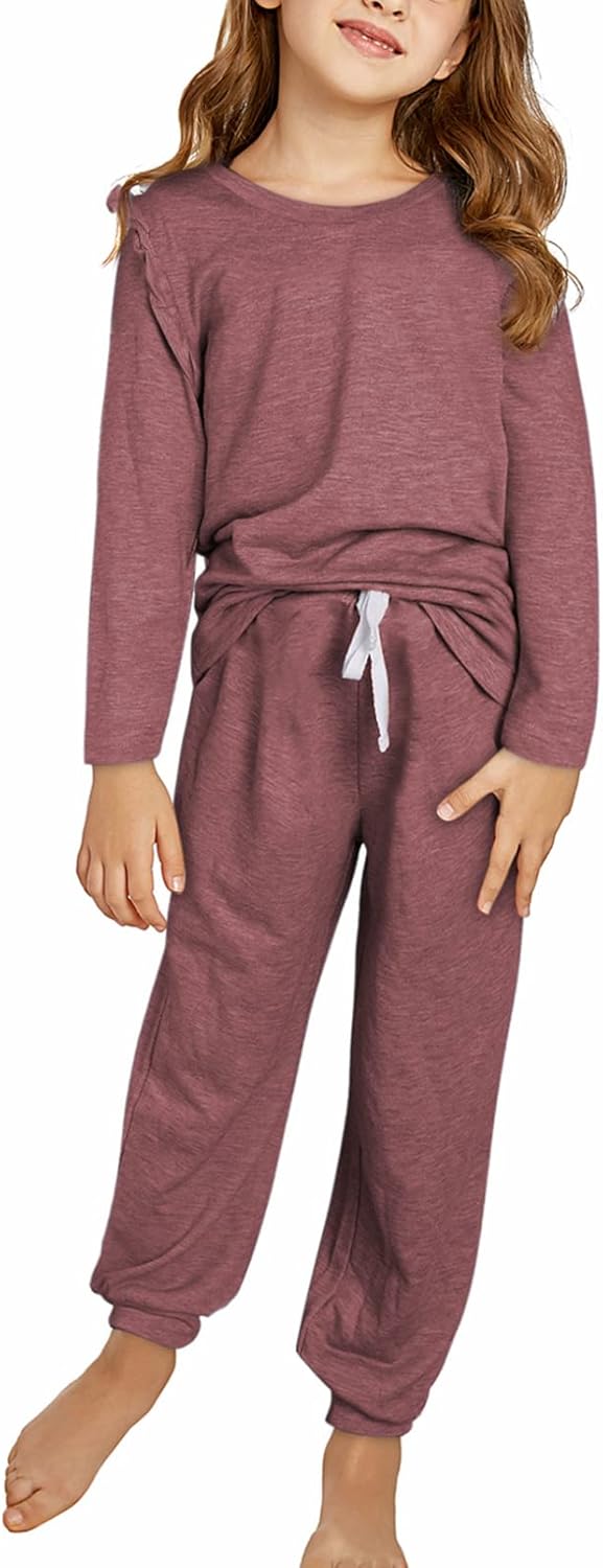 Customers find the coordinated outfits cozy and soft, with cute colors and shoulder ruffles. They find them good value for money and decent quality for the price. However, some customers have differing opinions on the sizing and material quality.