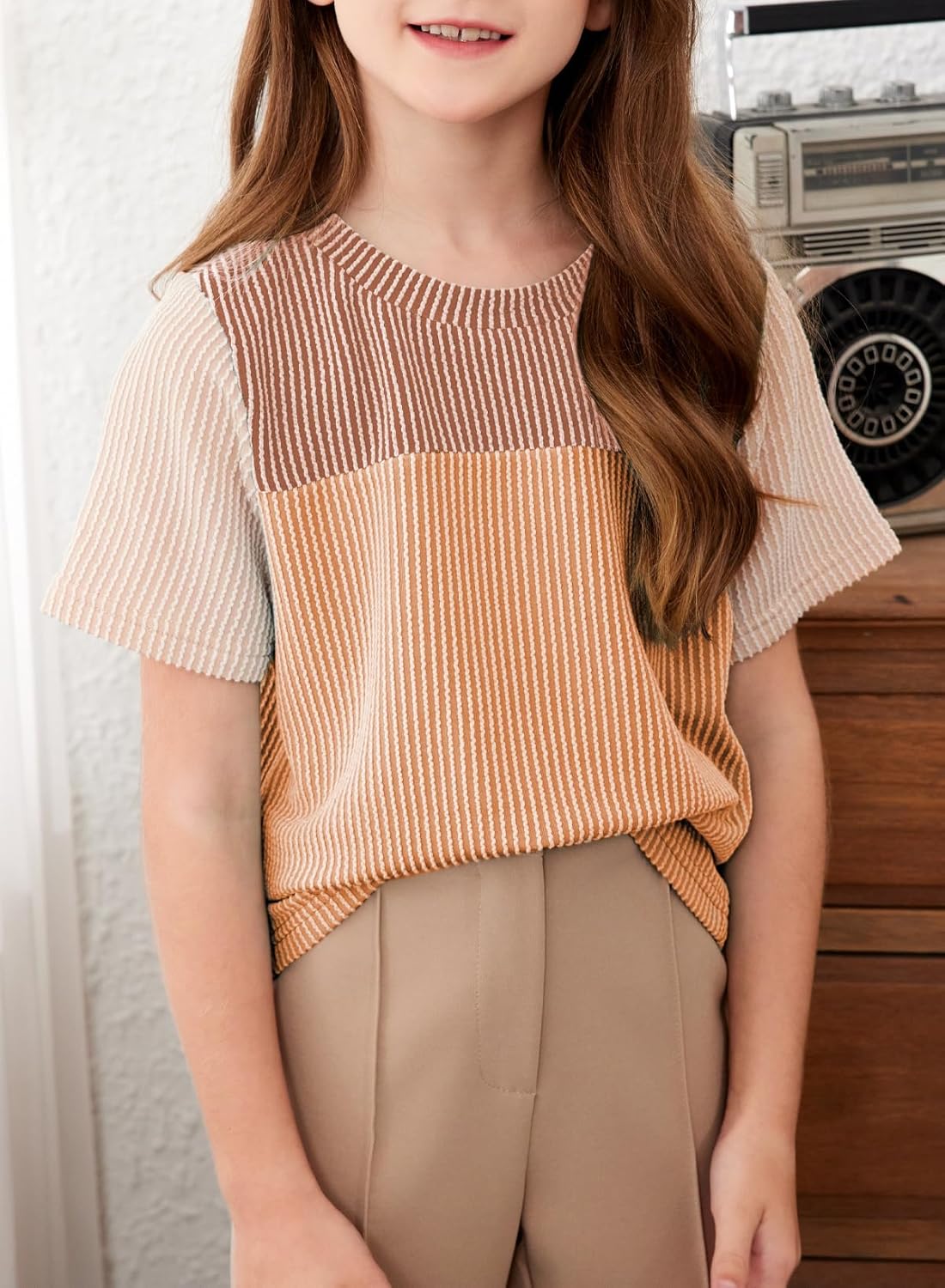 blibean Tween Girls Summer Short Sleeve Shirts Kid Color Block Tops Size 6-15 Years