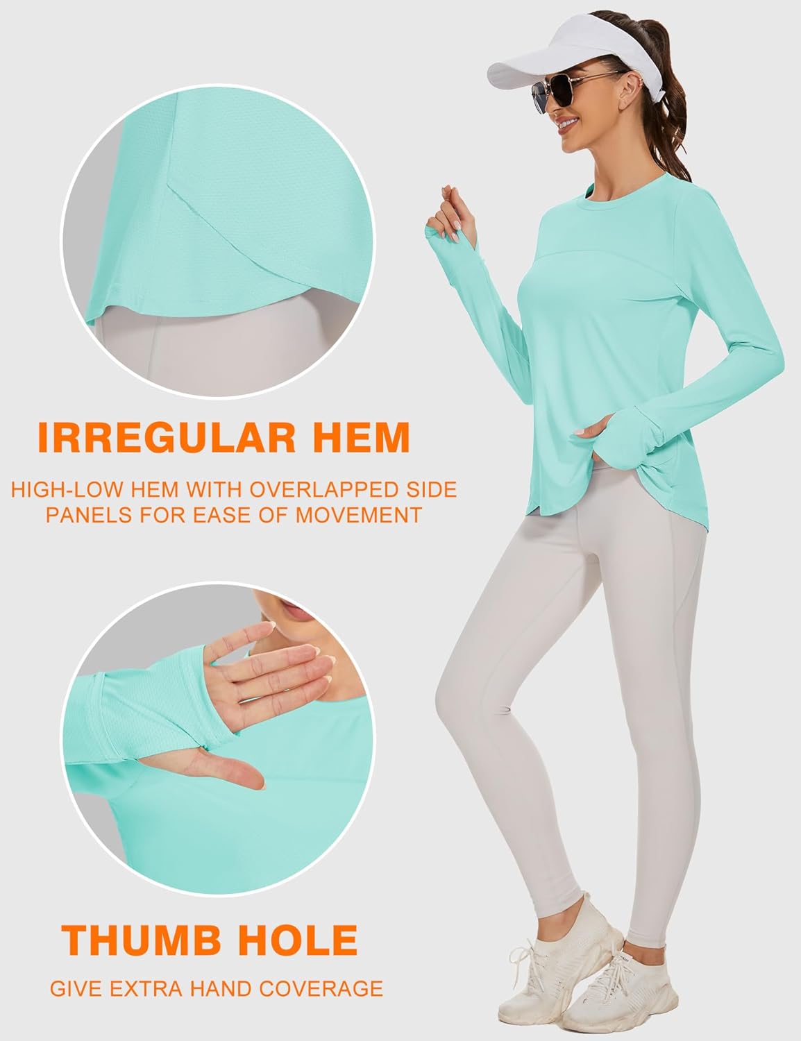 Womens Long Sleeve Workout Tops UV Protection Athletic RunningTops UPF 50+