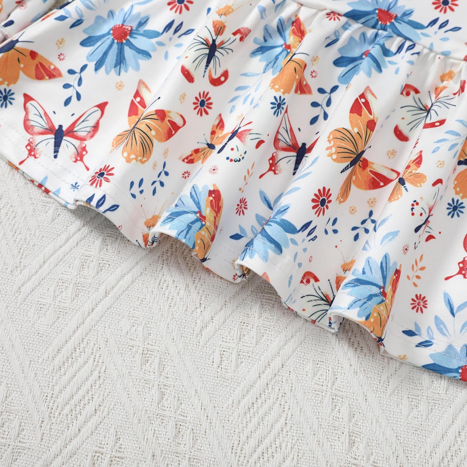CARETOO Girls Clothes Outfits, Cute Baby Girl Floral Short Sleeve Pant Set Flower Ruffle Top