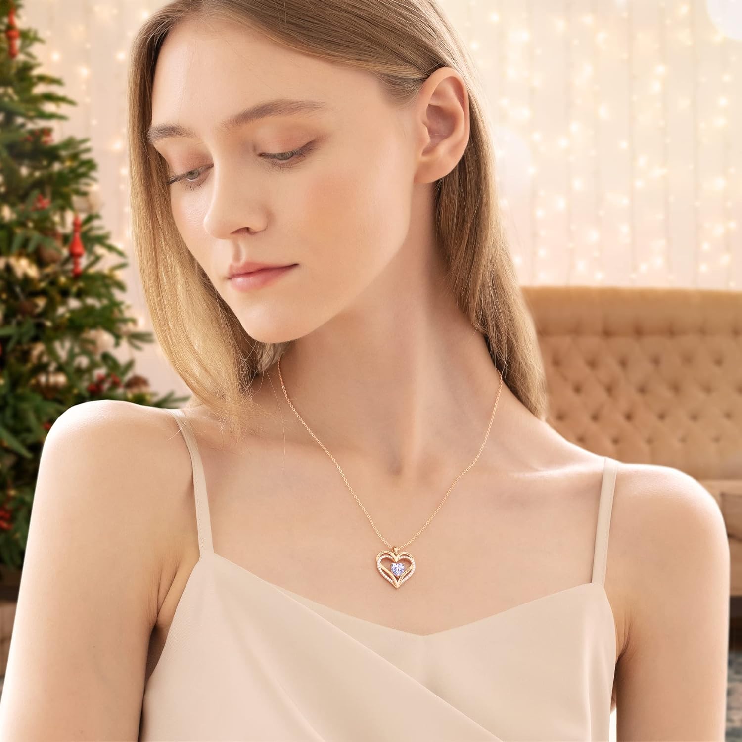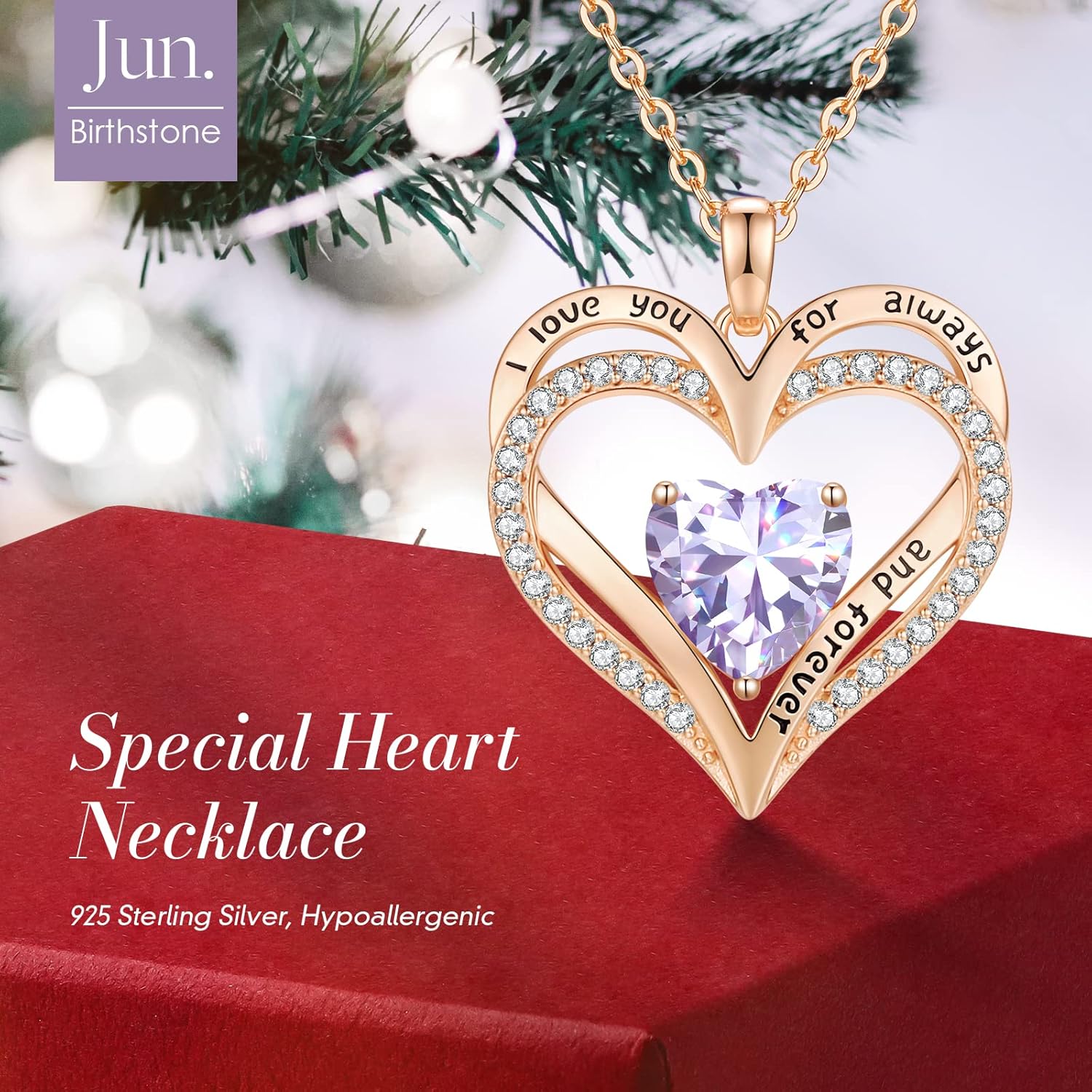 Forever Love Heart Pendant Necklaces for Women with Birthstones
