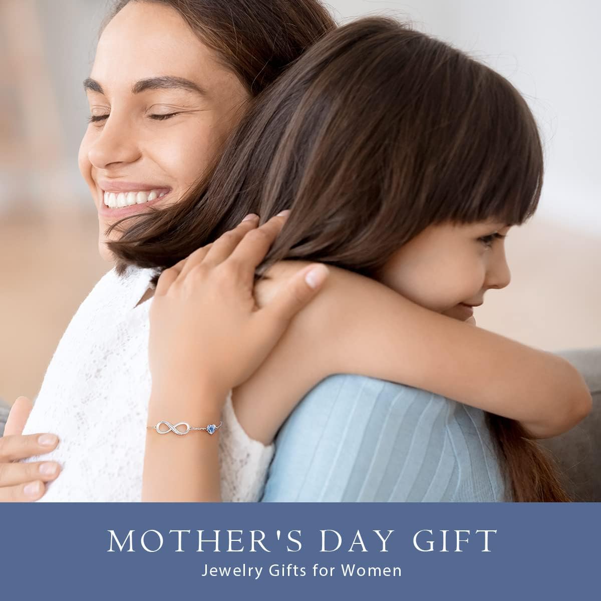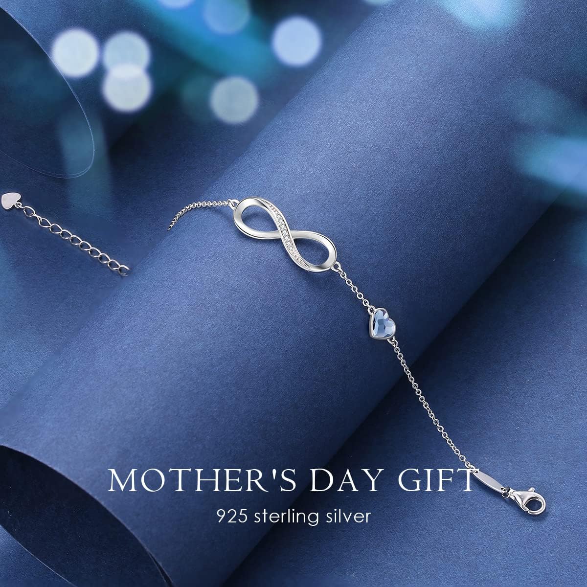 CDE Infinity Heart Birthstone Charm Link Bracelet for Women 925 Sterling Silver Stainless Steel Adjustable Mother’s Day Gift Anniversary Jewelry Birthday Gifts for Women Wife Girlfriend Her