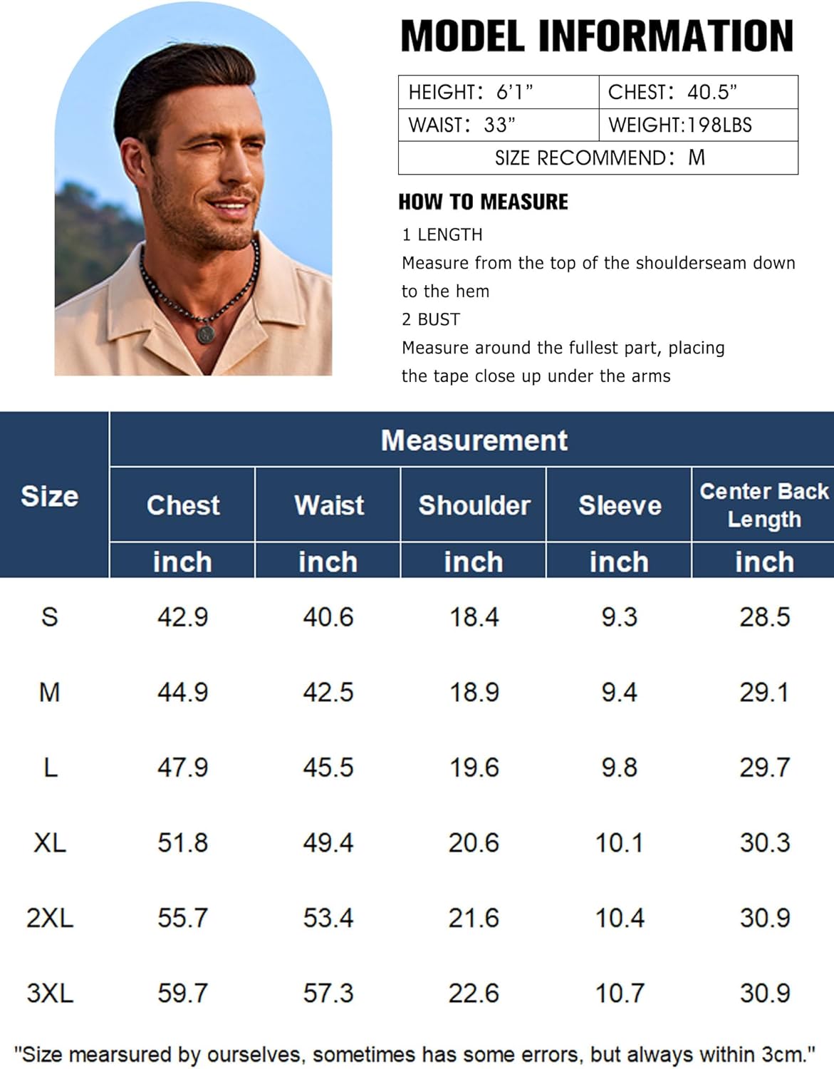 Material – Cotton, linen, soft, comfortable, breathable, slim fit, loose fit, suitable for all seasons.Features – Guayabera, cuban collar, camp collar, regular collar, lapel collar, printed, floral, short sleeve, button collar, button collar.Style design – Hawaii, beach, festival, wedding, business, fashion, spring and autumn, casual, slim, simple style, solid color, modern fashion, vacation.Occasion – Wedding, daily wear, work, business, golf, vacation, party, resort or casual wear.