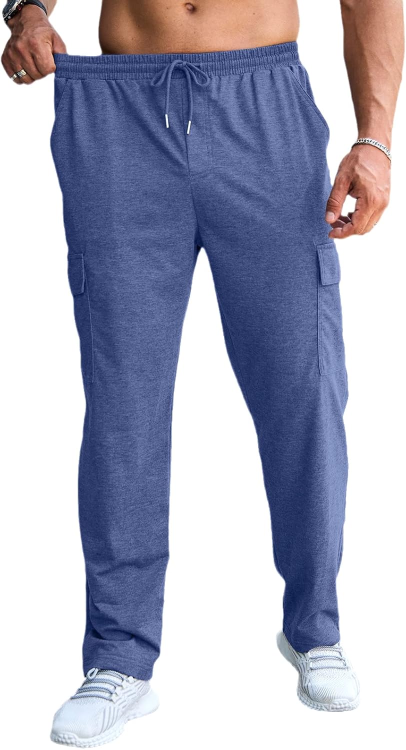 CTU Mens Fashion Baggy Sweatpants Lightweight Workout Cargo Sweatpants Athletic Pants Open Bottom Joggers with Pockets