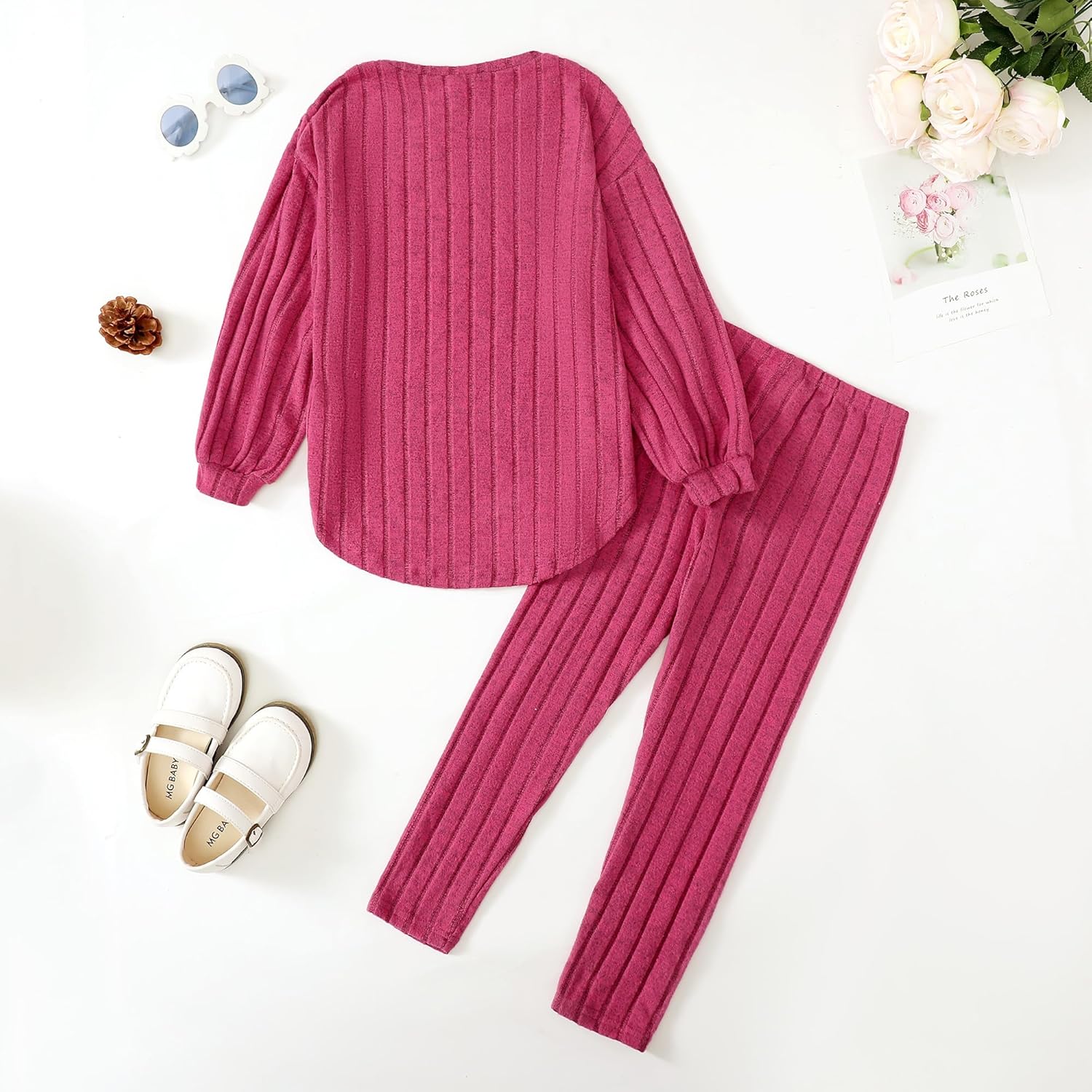 DEFAHN Toddler Girl Fall Clothes Set Warm Soft 2-piece Long Sleeve Ribbed Knit Tee & Leggings Winter Drop Shoulder Girl Set