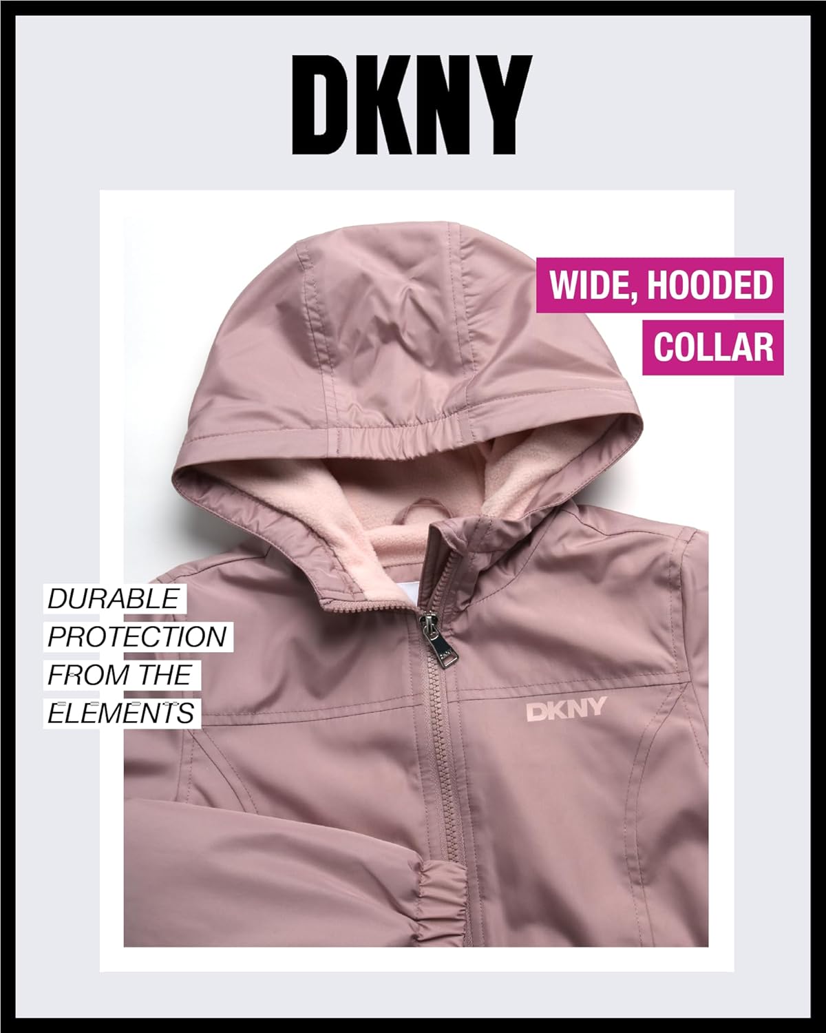 Elevate your child’s outerwear game with the DKNY Girls’ Jacket, designed for girls who love to stay active, stylish, and comfortable in any season. Whether she’s heading to school, playing outside, or embarking on a weekend adventure, this jacket is the perfect combination of function and fashion, making it a favorite for both kids and parents alike. This girls jacket is crafted from high-quality, lightweight materials that offer exceptional durability without weighing her down. The weather-resistant exterior ensures she stays protected from the elements, whether it’s a light rain or a breezy afternoon. Ideal for layering, this girls lightweight jacket transitions seamlessly between different weather conditions, giving your child the flexibility to stay comfortable no matter what the day brings. Inside, the jacket is lined with soft fleece for extra warmth and coziness. The fleece lining ensures maximum comfort, allowing your child to enjoy outdoor play without feeling cold. This kids jacket is a versatile piece that will keep her warm during early morning walks to school or evening outdoor fun, providing just the right amount of insulation without being bulky. Functionality is key with this jacket for girls, which is designed to make life easier for both parents and kids. The durable zipper allows for easy on-and-off transitions, while the deep side pockets offer ample space to carry small essentials like gloves, snacks, or little treasures. Let her step out with confidence and stay prepared for whatever the day has in store, knowing she’s equipped with a jacket that provides warmth, durability, and style—all in one.
