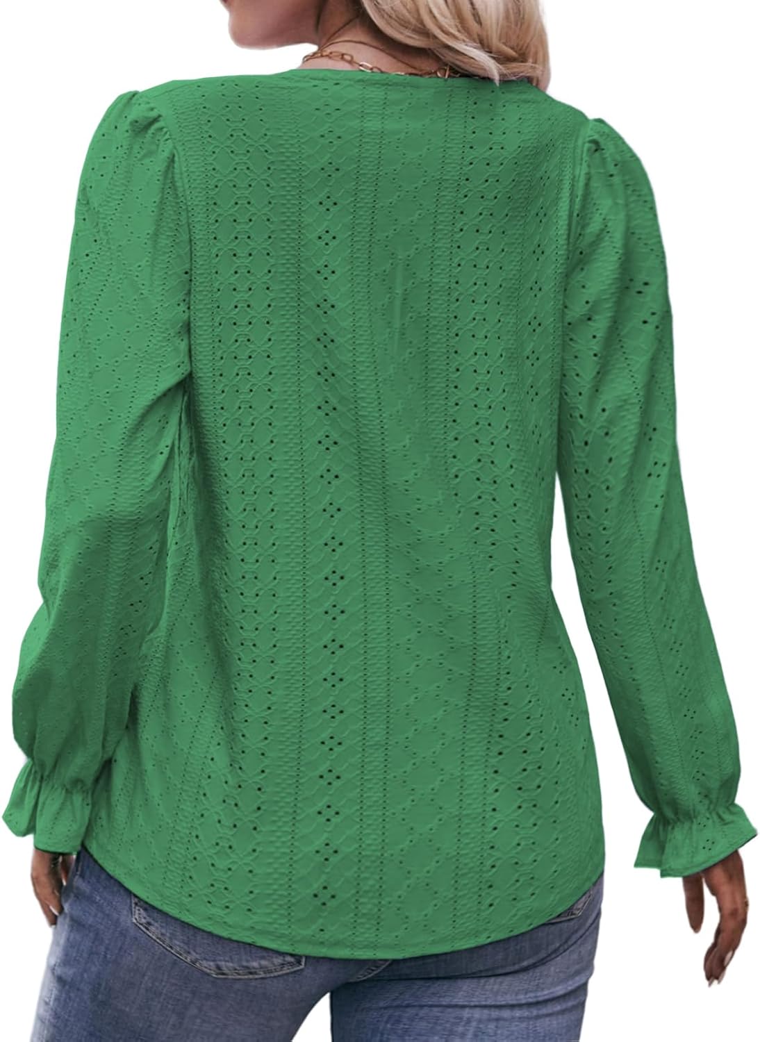 DOLNINE Plus Size Tops for Women V-Neck Puff Long Sleeve Eyelet Drawstring Shirts