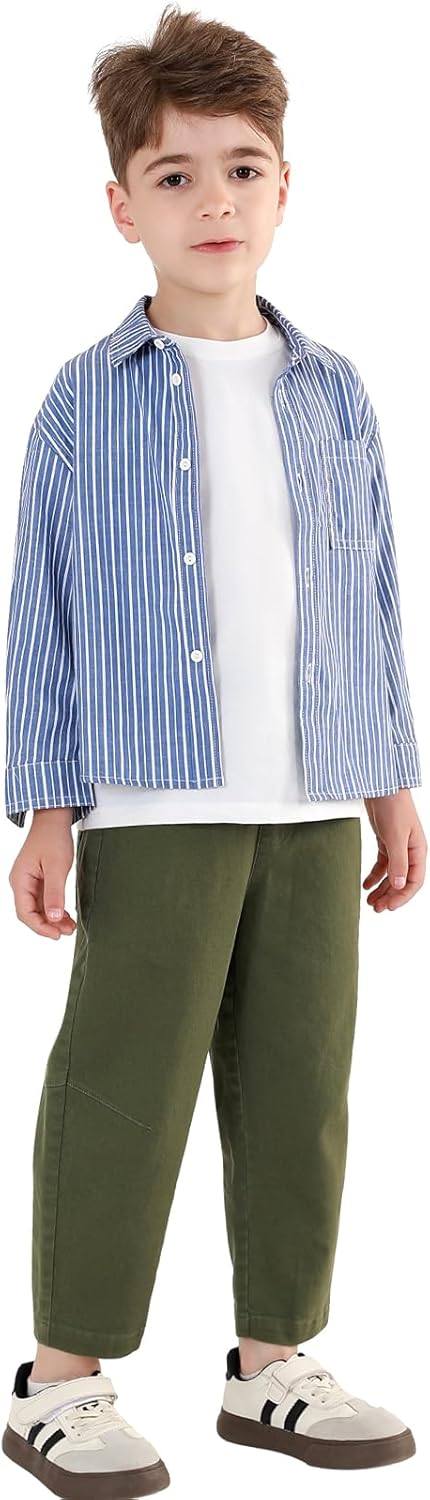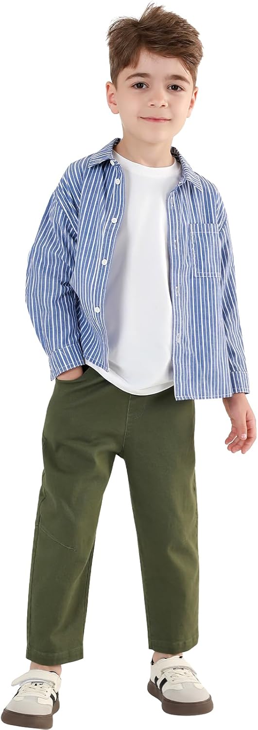 Erasers&pencils Boys 2 Pack Pull on Cargo Pants Athletic Workout Pants with Pocket Casual Uniform 100% Cotton Party for Kids