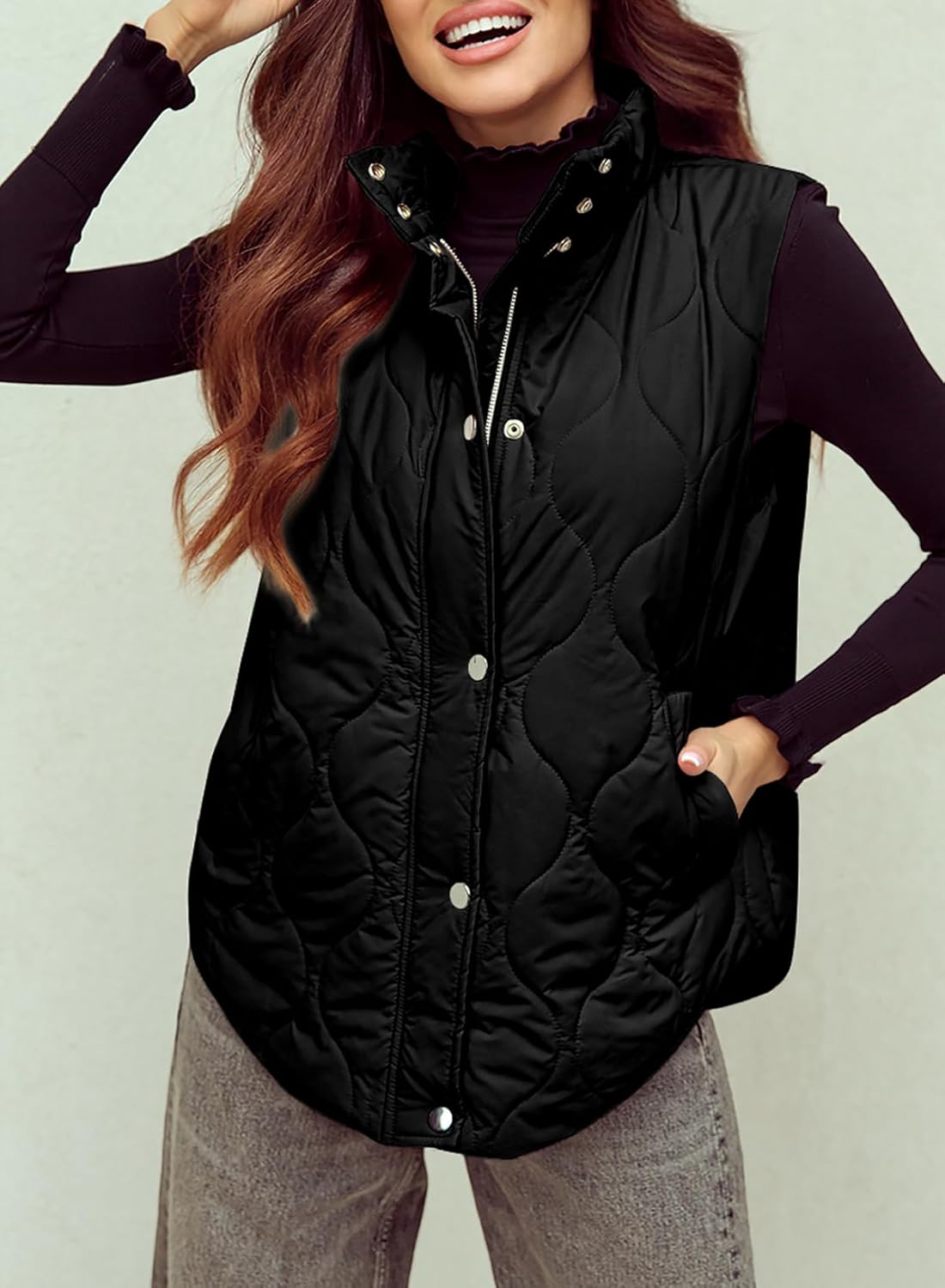 EVALESS Cropped Puffer Vest Women Lightweight Quilted Stand Collar Sleeveless Jackets Fall Button Zip Up Warm Coat Outerwear