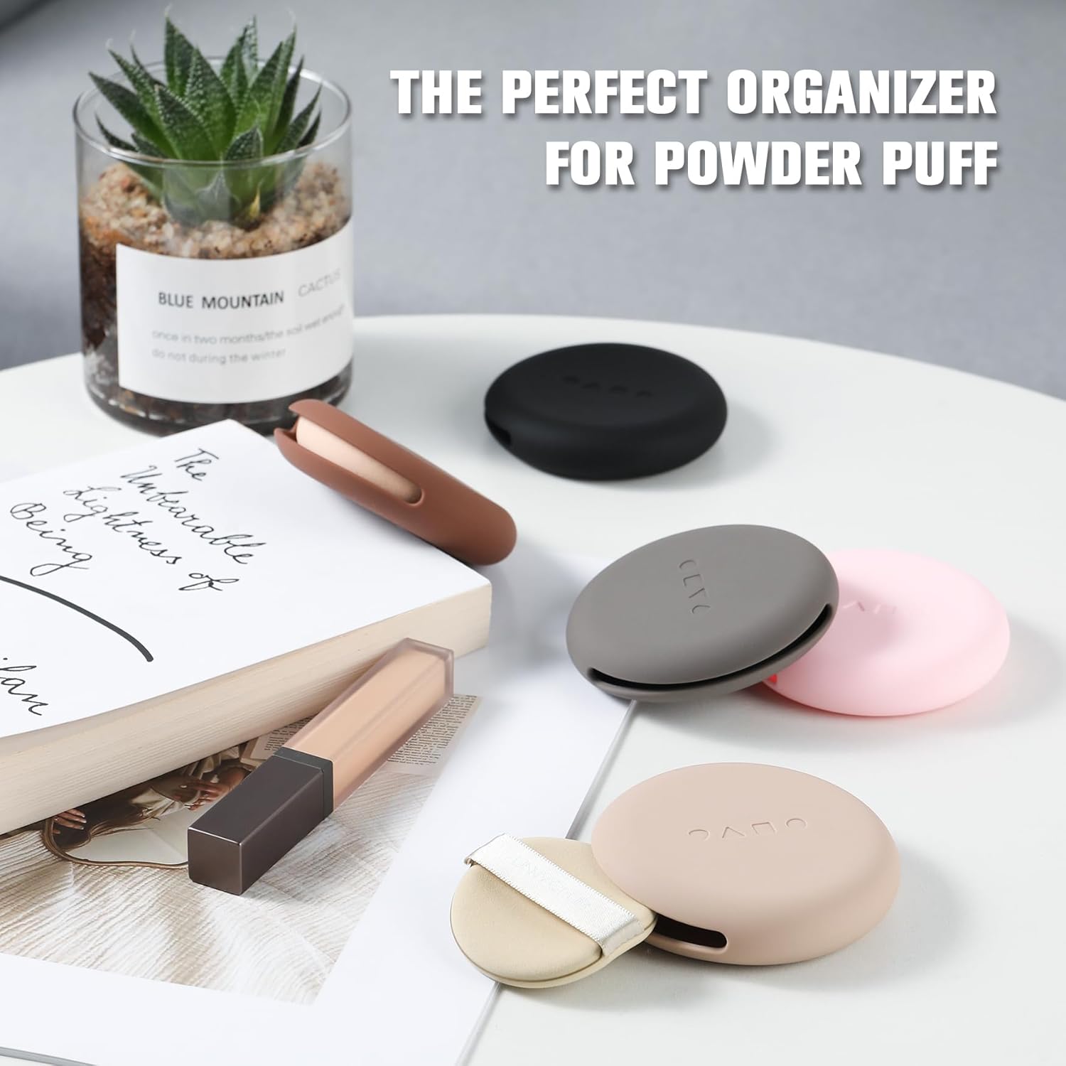 MORE SPACE – With a diameter of 3.1 inches, our Silicone makeup puff case is big enough to hold all sizes and shapes of powder puffs. You can also use our Silicone makeup blender holder to store small brushes and cotton pads!