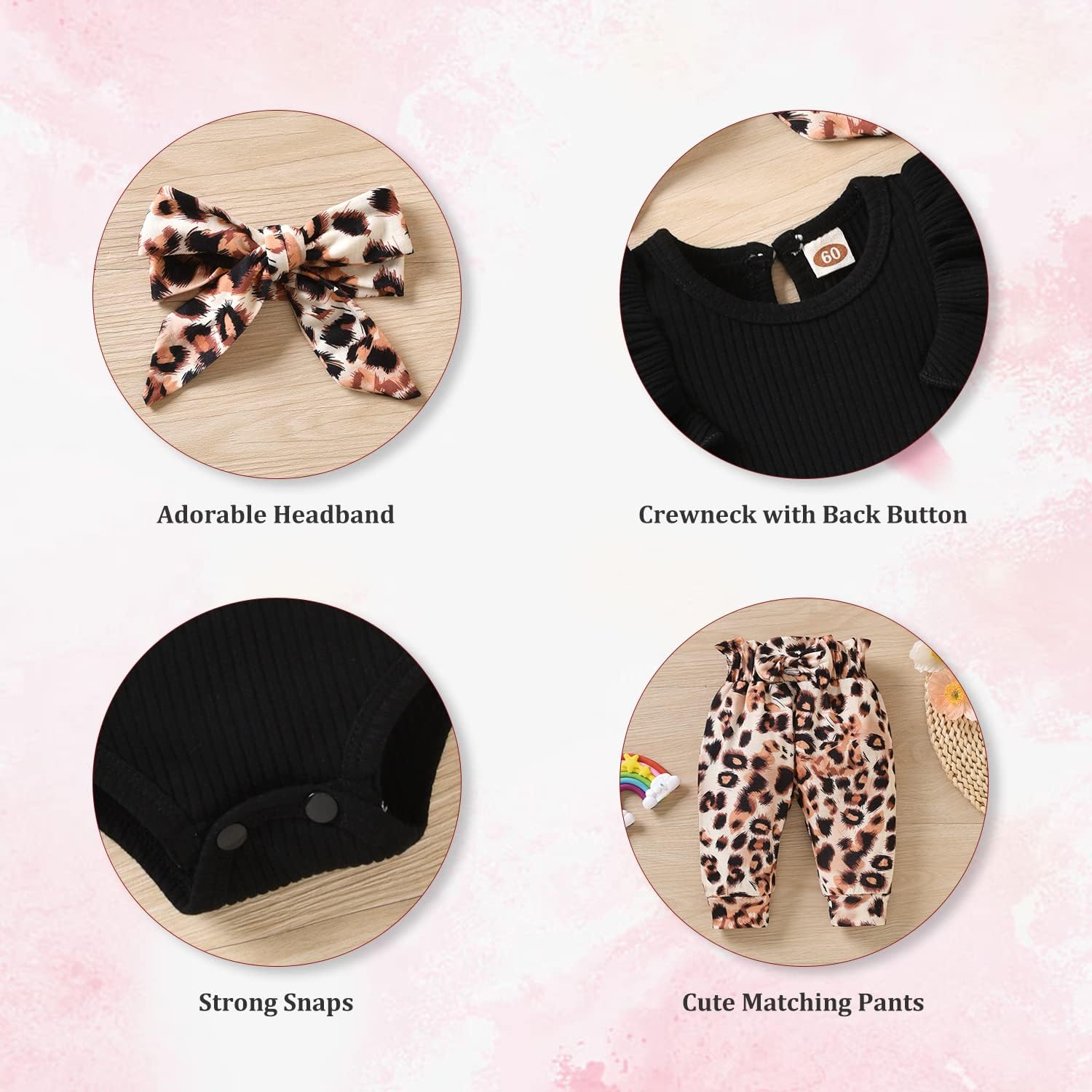 fioukiay Preemie Newborn Baby Girls Clothes Infant Little Kids Romper Bodysuit Pants Headband Clothing Set Summer Outfits