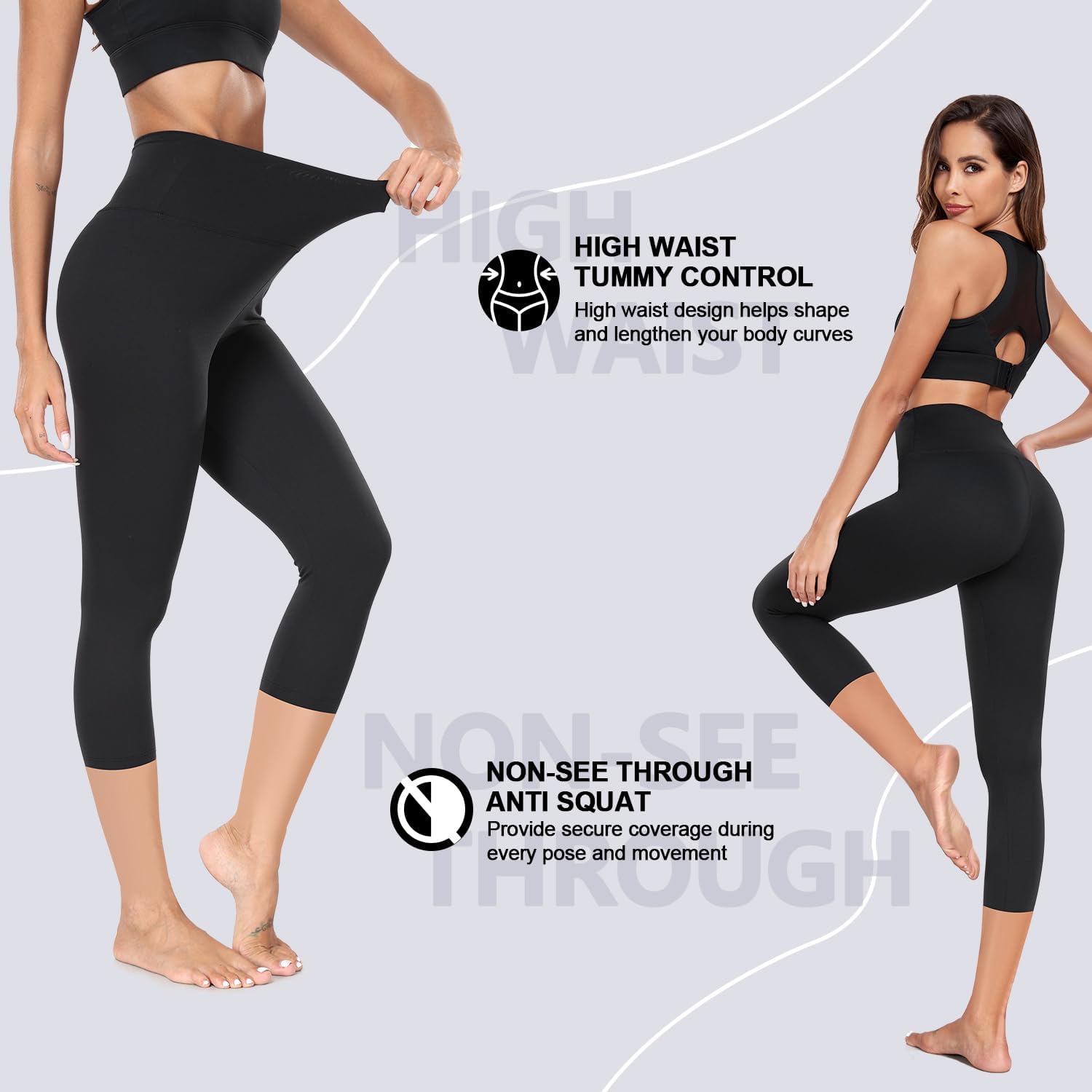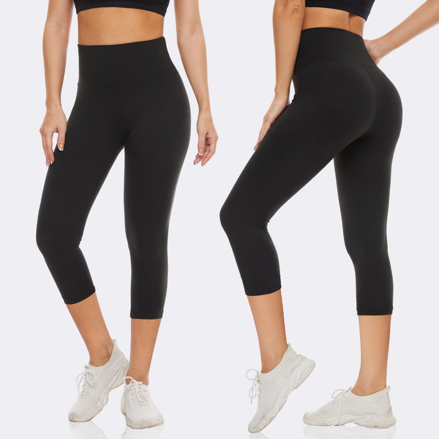 FULLSOFT 2 Pack Capri Leggings for Women-High Waist Tummy Control Non See Through Leggings Workout Pants