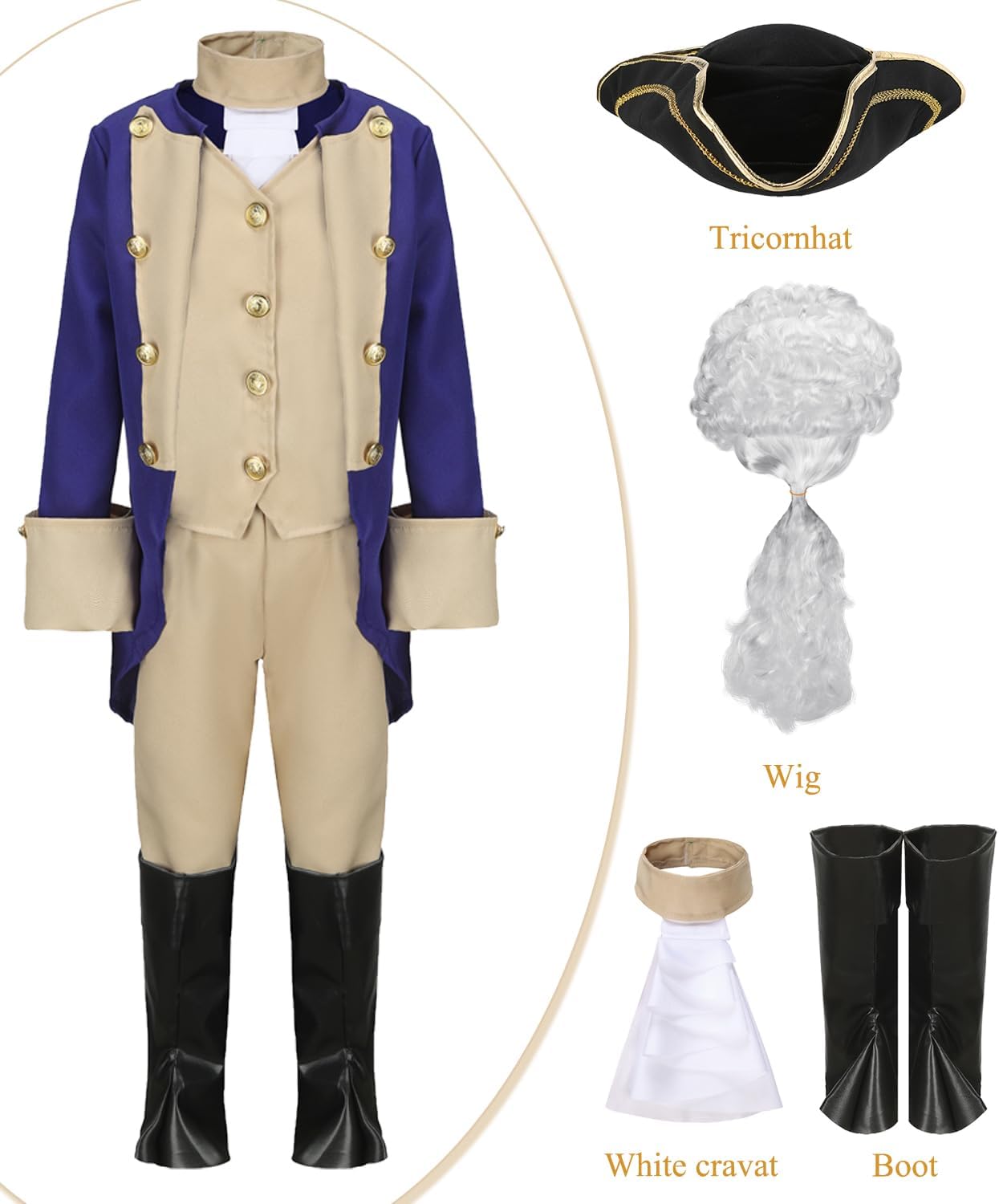 George Washington Costume Kids Founding Fathers Cosplay Outfit Hamilton Colonial Uniform Boys Halloween School Party