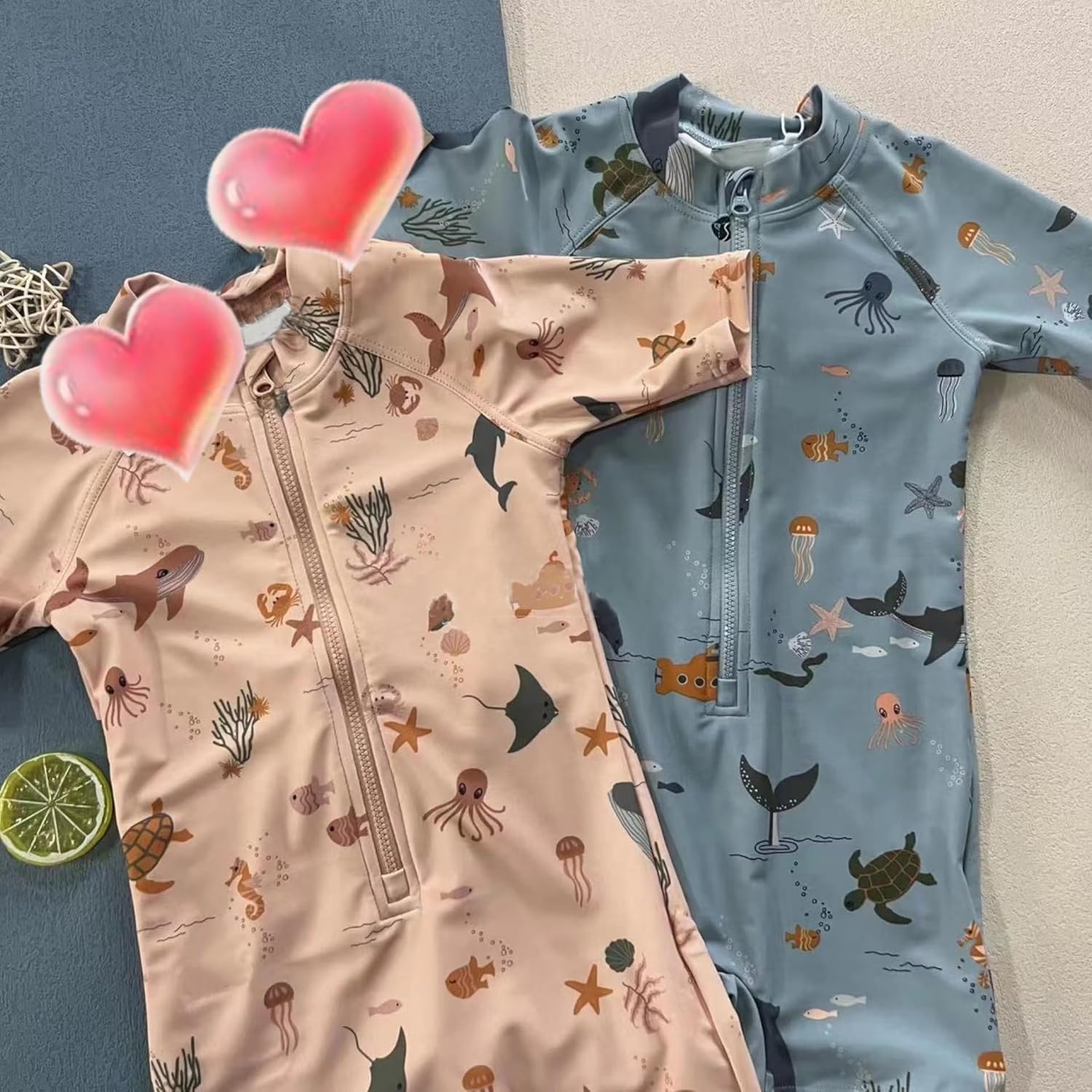 Toddler girls long sleeve rash guard swimsuit with marine animals UPF50+ Sun Protection