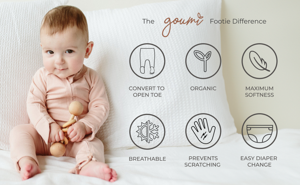 Goumi footies are very versatile. Our footies feature a two-way zipper for easy diaper changes.