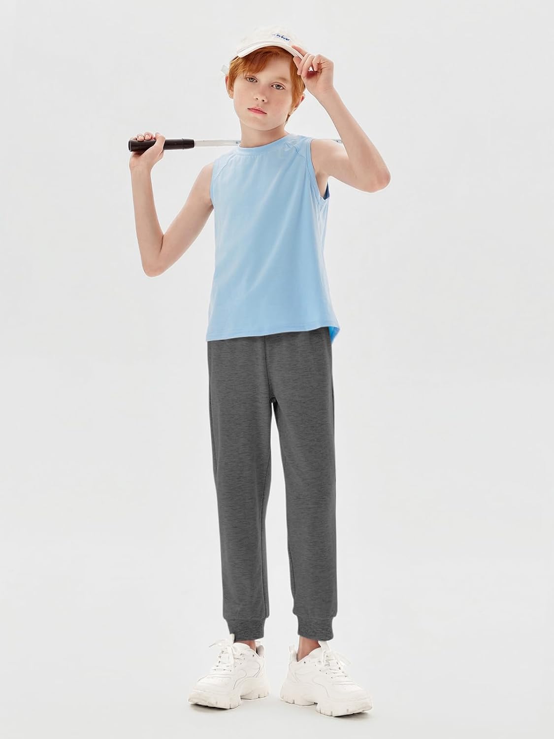 Haloumoning Boys Jogger Sweatpants Kids Summer Drawstring Elastic Waistband Athletic Pants with Poctkets 5-14 Years
