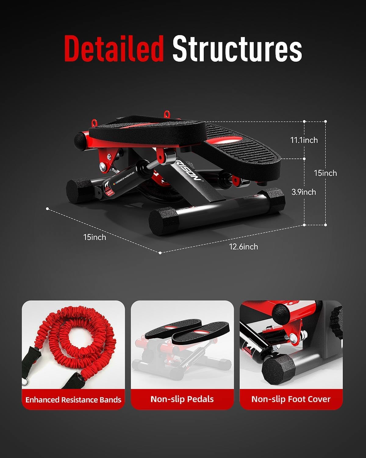 Mini stepper with Enhanced Removable Resistance Bands: Different from the ordinary and simple rope on the market, HARISON uses the latest upgrade and enhanced version of high elasticity and high density resistance bands to match our stepper machine, anti-slip, anti-sweat, Safe and not easy to break, to provide you with a safe and comfortable stepper exercise