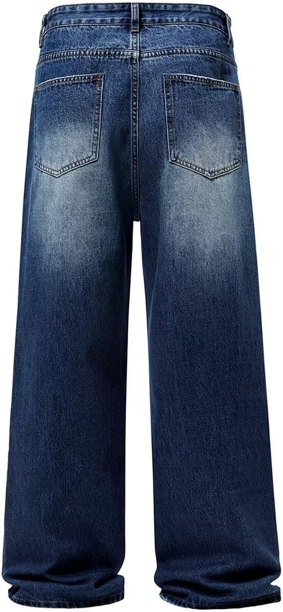 HENGAO Men’s Relaxed Fit Wide-Leg Baggy Jeans Y2K Streetwear Denim Pants