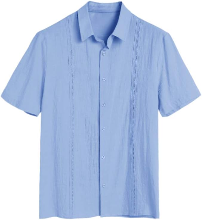 Hestenve Mens Short Sleeve Cuban Camp Guayabera Shirt Linen Cotton Hippie Beach Button Down Shirts