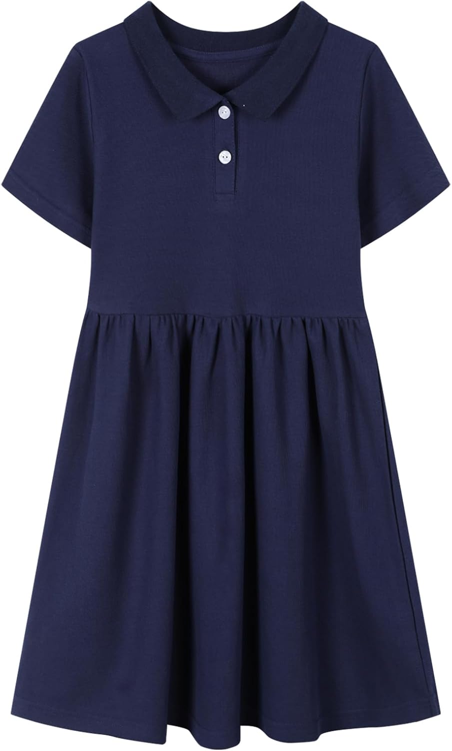 HILEELANG Little Girl Uniform Polo Dress Short-Sleeve Cotton Polo Dress