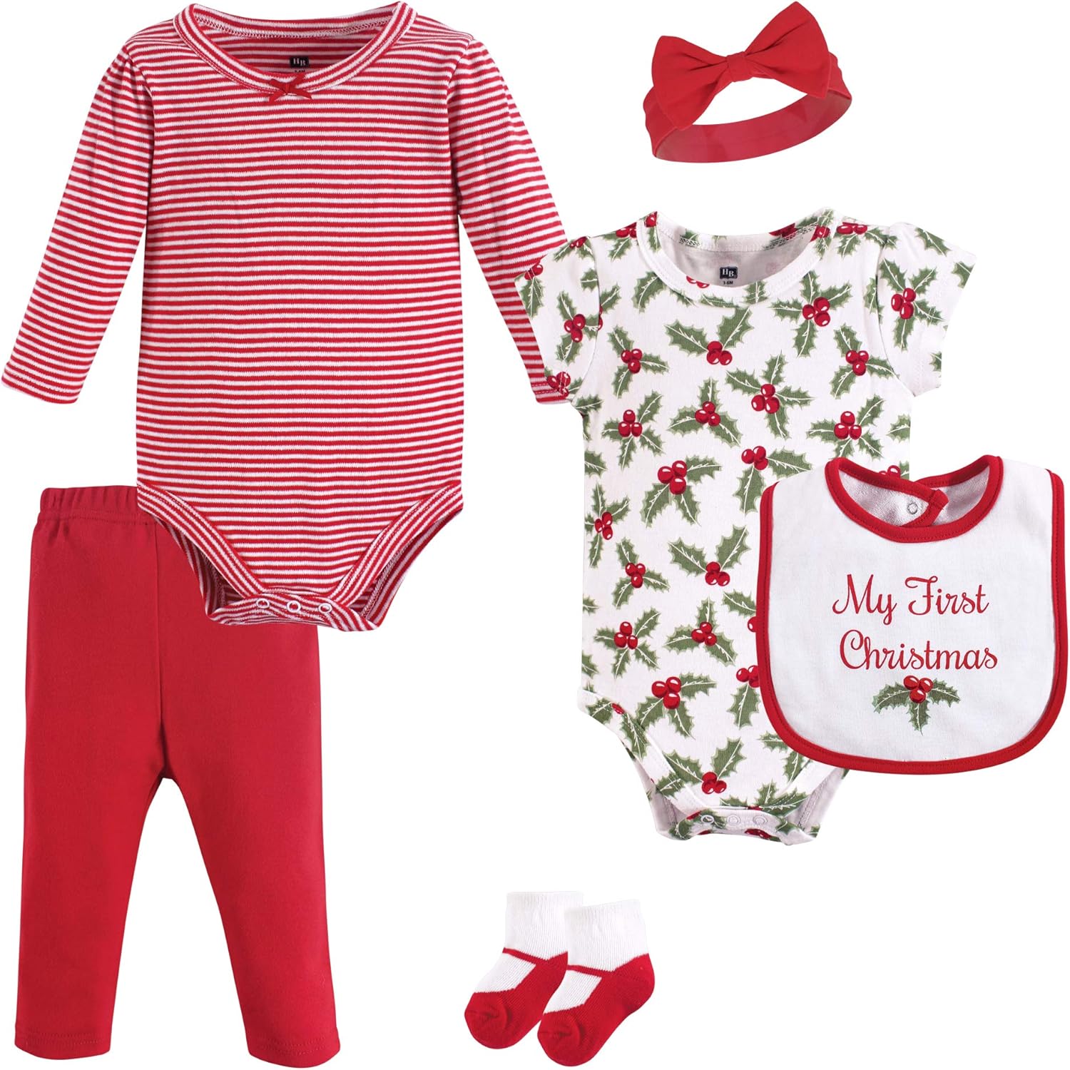 Hudson Baby baby boy’s and baby girl’s 6 piece layette set includes 2 bodysuits, 1 pair of pants, 1 bib, 1 pair of socks and 1 cotton cap. This mix and match outfit make adorable and trendy options for your little one’s wardrobe. Bodysuit, pants and cap are made of 100% super soft cotton, while bib is made of cotton blend to help catch and absorb any drools or spills! Socks are also a cotton blend to stretch with baby’s growing feet! Bodysuits have snap closures to make dressing time a breeze. These sets make the perfect baby shower gift!