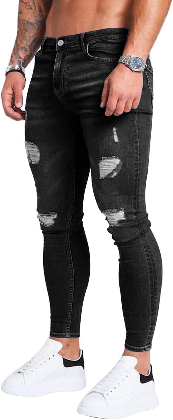 HUNGSON Men’s Ripped Skinny Jeans Stretchy Slim Fit Jeans Pants