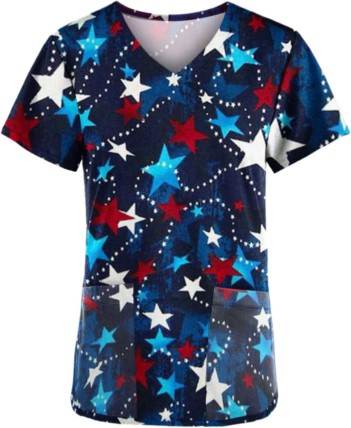 Independence Day Scrub Top for Women Summer American Flag Short Sleeve Working Uniform 4th of July Patriotic T Shirt