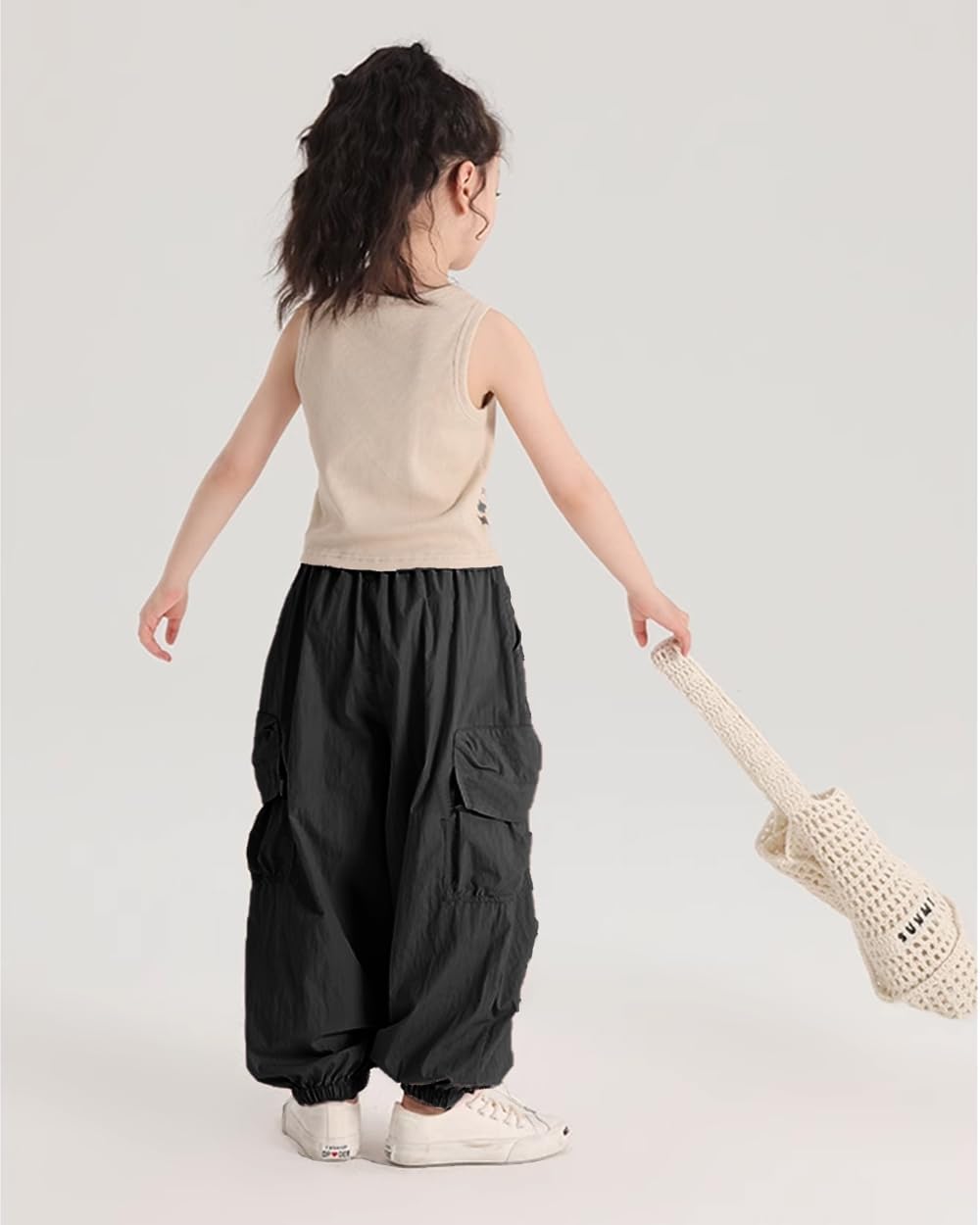J·E STERGUARD Cargo Pants for Girls Elastic Waist Parachute Y2K Jogger Hiking Pants 4t-16Y