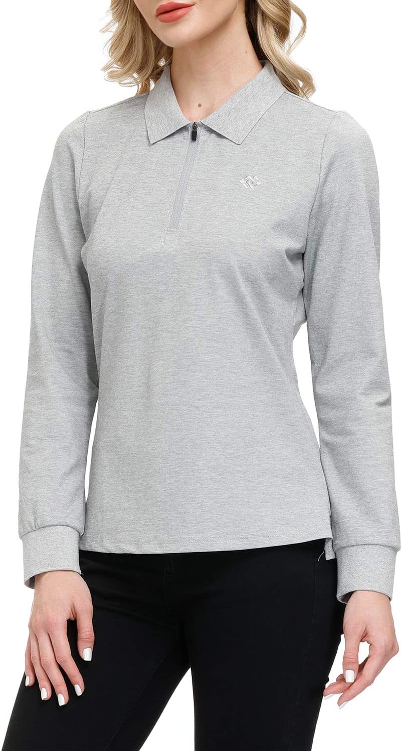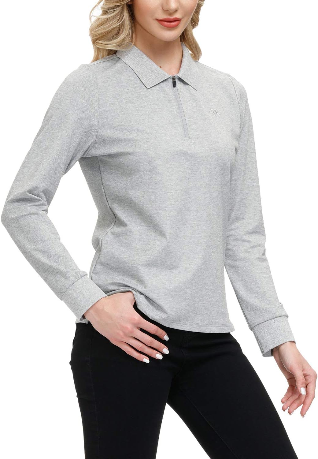 JINSHI Women’s Golf Polo Shirt Long Sleeves Zip Up Sport Active Shirts Quick Dry Athletic T-Shirt Casual Tennis Tops Slim Fit